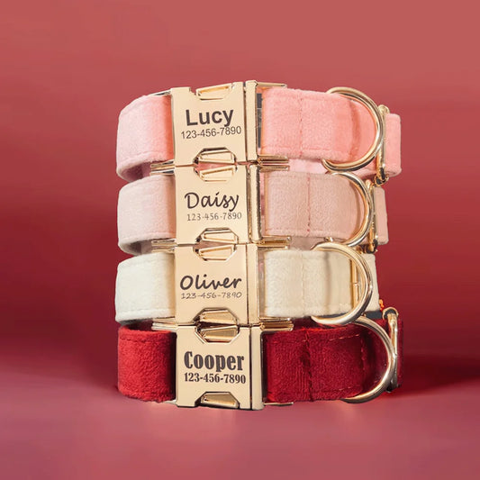 the COZY CREST PERSONALIZED COLLAR - Custom Dog Collar, Soft Velvet Dog Collars, Winter Personalized Pet ID Tag Plush Necklace for Small to Large Dogs, Pug, Free Engraving