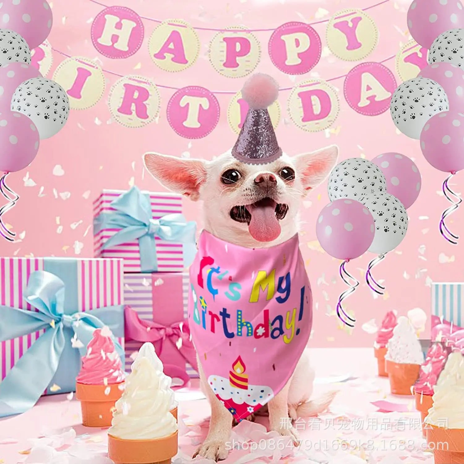 1 Set Dog Bib Headgear Neckerchief Headgear Excellent All-matched Pet Hat Scarf Pet Dog Birthday Set Pets Accessories