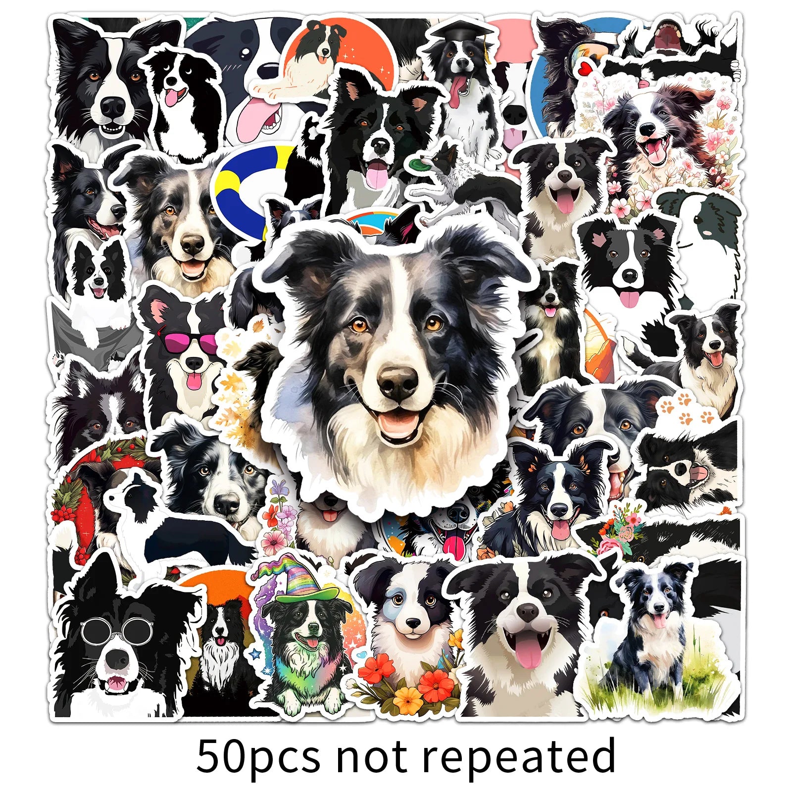 10/30/50PCS Cute Border Collie Animals Sticker Kawaii Dog Cartoon Stickers for Kid Travel Luggage Scrapbooking Graffiti Decals