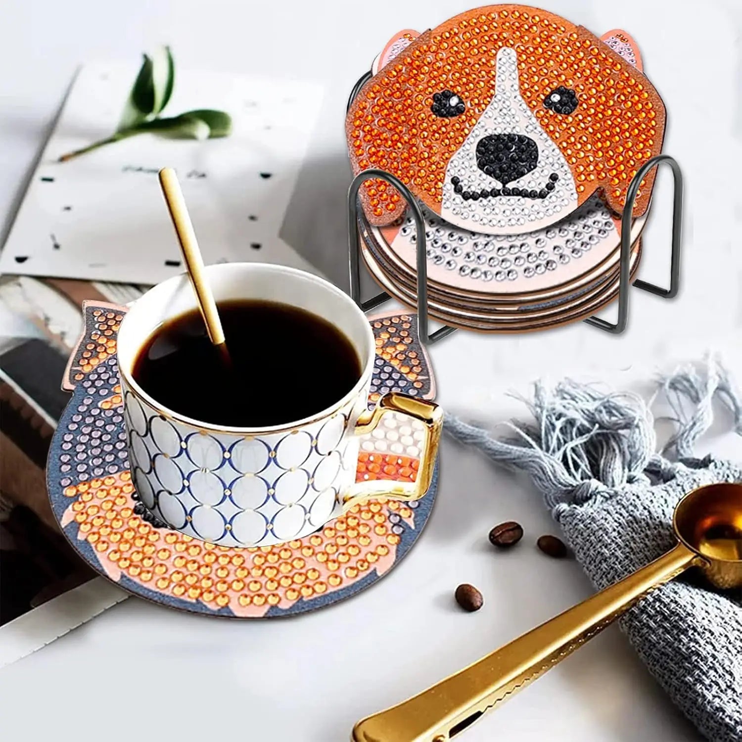 10 pieces/set of wooden coasters with dog patterns and diamond paintings, DIY creative diamond painting coasters, holiday gifts