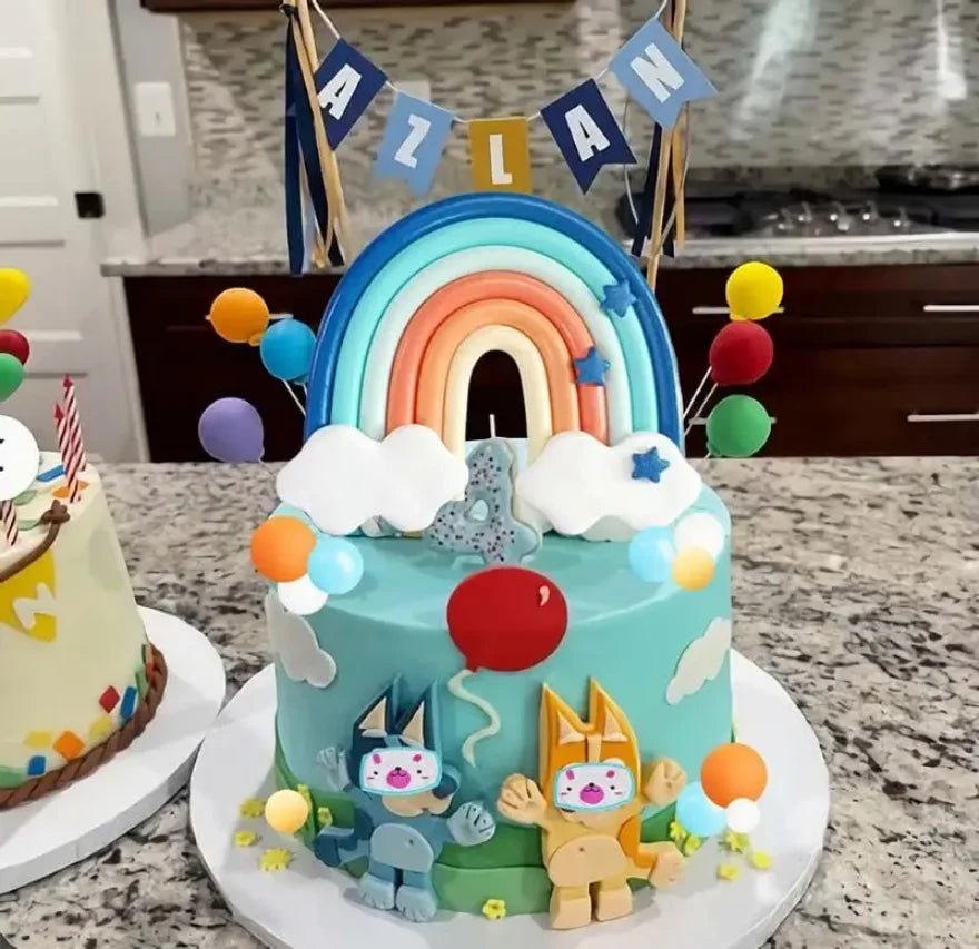 14pcs Blue Rainbow Cake Toppers With Orange White Balls For Dog Birthday Cake Decorations Baby Shower Party Supplies