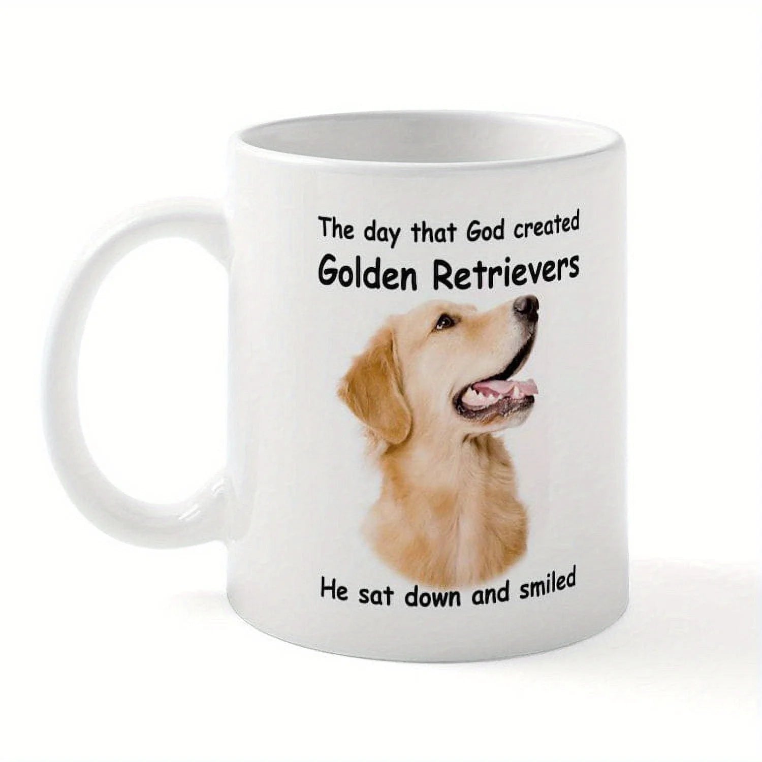 1pc Golden Retriever 11oz White Ceramic Coffee Mug with C-Handle - "He Sat Down and Smiled" Humorous Dog Lover Quote, Durable &