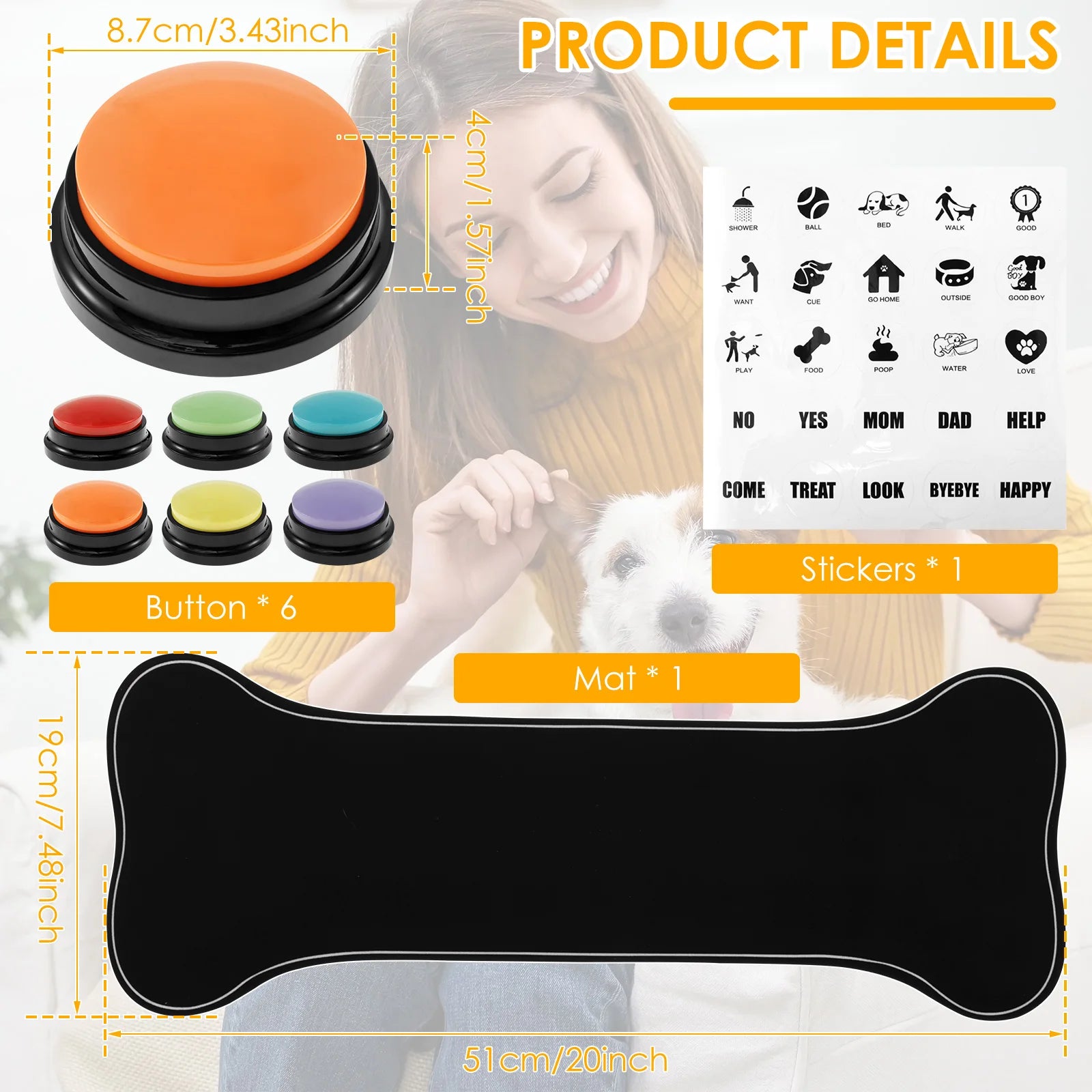 4/6 Pcs Dog Communication Buttons with Nonslip Mat Voice Recording Button for Pet Training Buzzer 30 Second Record Playback