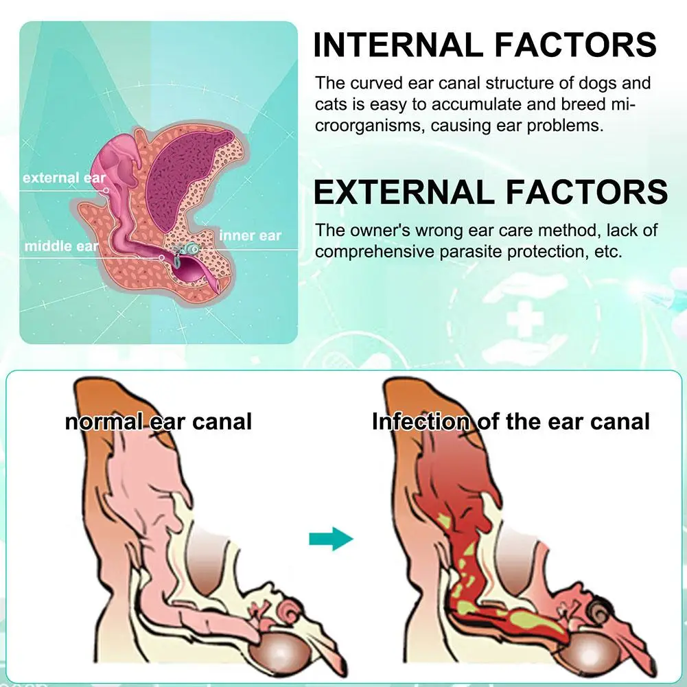 - Pet ear cleanser uses a gentle formula that does not contain any irritating ingredients, which can safely clean pet ears and avoid discomfort or irritation to pets.