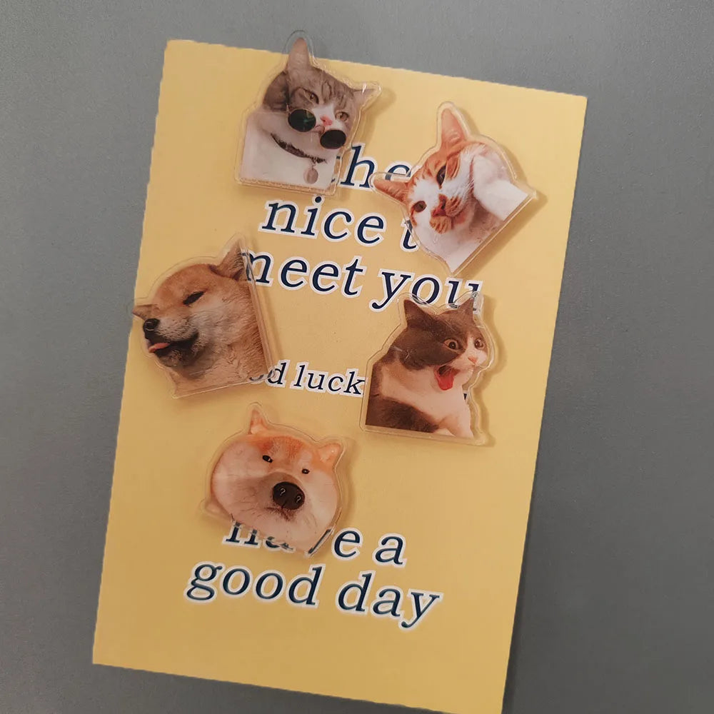 5pcs cute and Fun Cat Dog Refrigerator Magnets Creative Fridge Photo Message Magnet Decorative