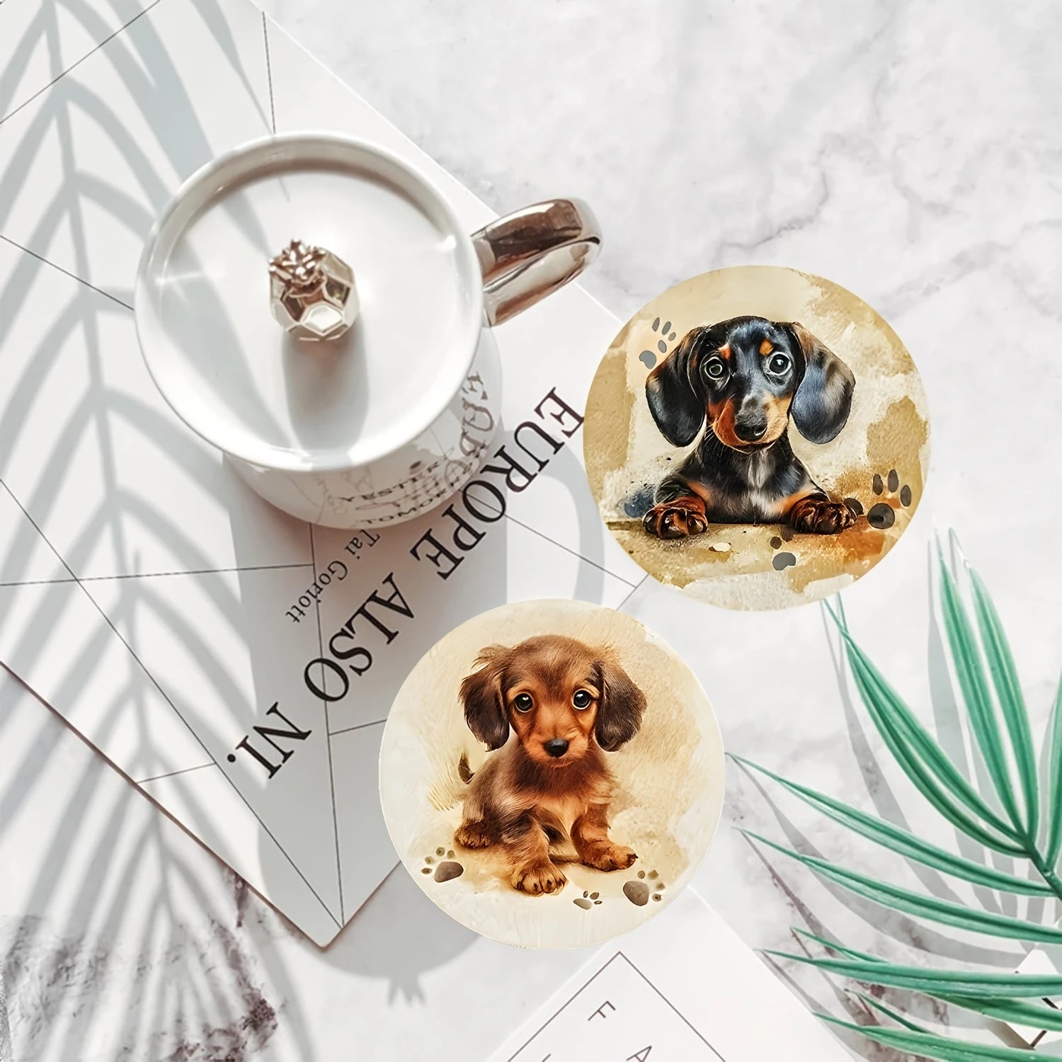6/8pcs 2D single-sided dog pattern heat resistant non-slip round wooden coaster perfect family afternoon tea coffee shop Gifts