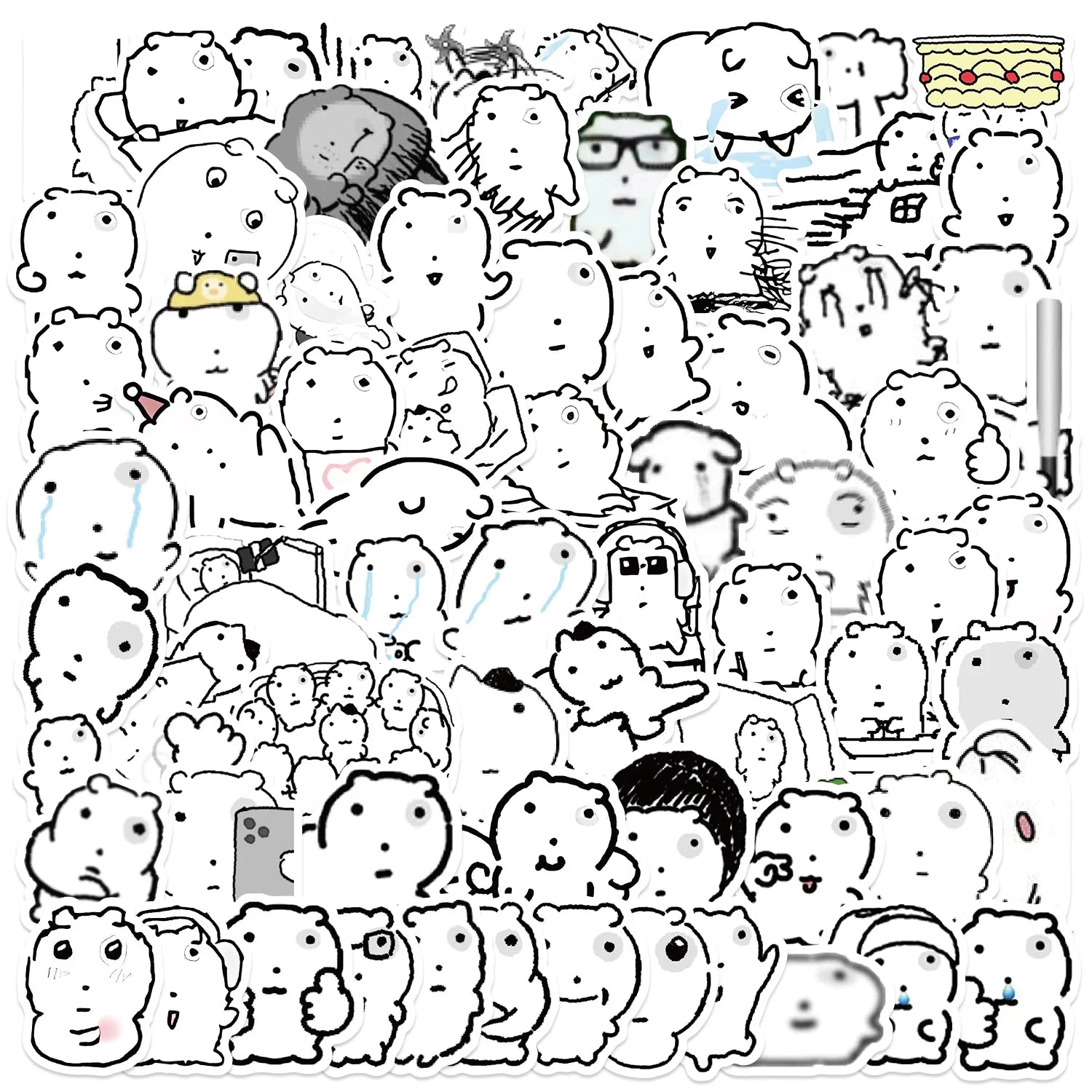 72 Sheets Swollen Eye Cat Stickers Black Sketch Cute Animal Water Cup Computer Mobile Phone Decoration Waterproof Stickers