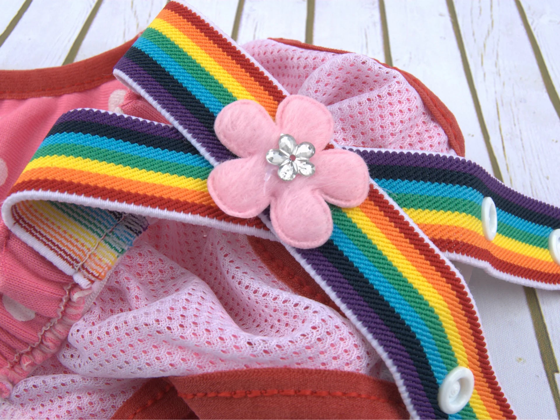 Adjustable Pet Diaper Pants for Female Dogs with Rainbow Suspenders Cute Polka Dot Puppy Sanitary Underwear Reusable Dog Shorts