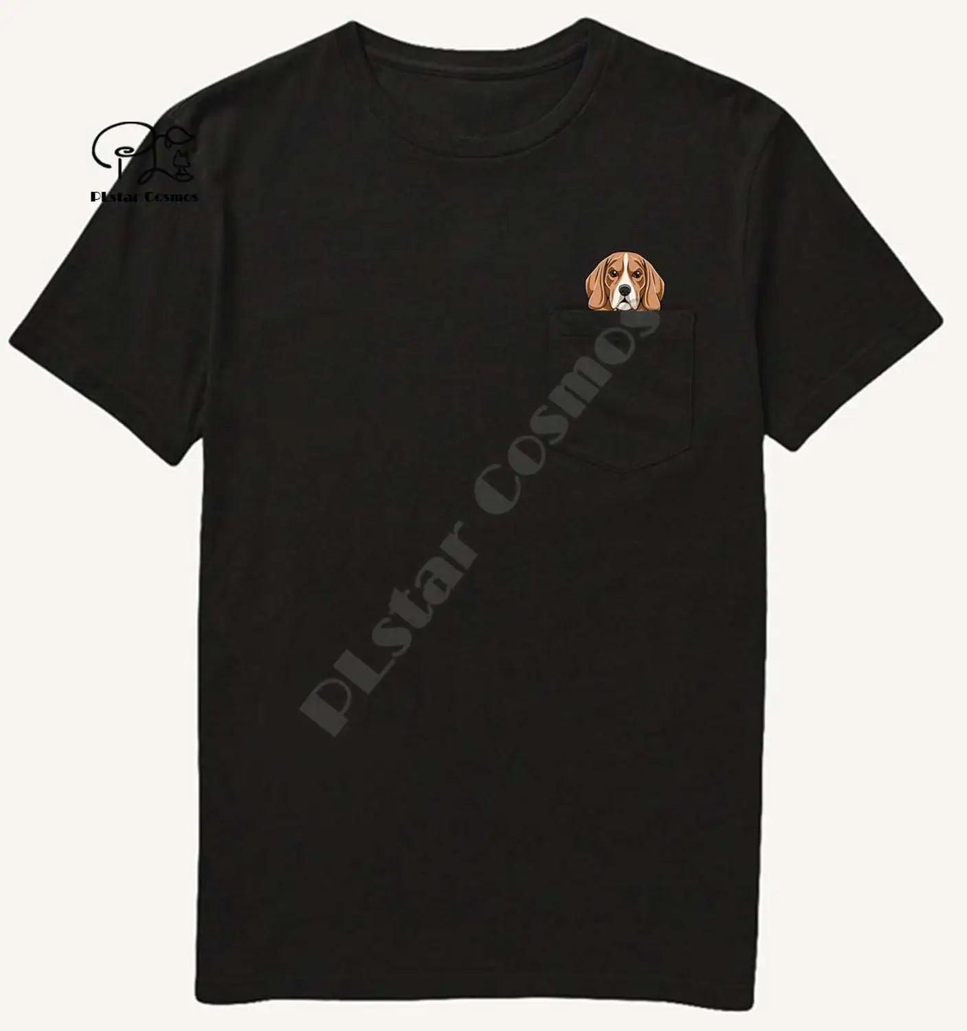 the BAD BEAGLE - Beagle Middle Hand in Pocket T-Shirt, Dog Lovers Black Cotton Men, Made in USA Cartoon T-Shirt, Men/Unisex New Fashion T-Shirt