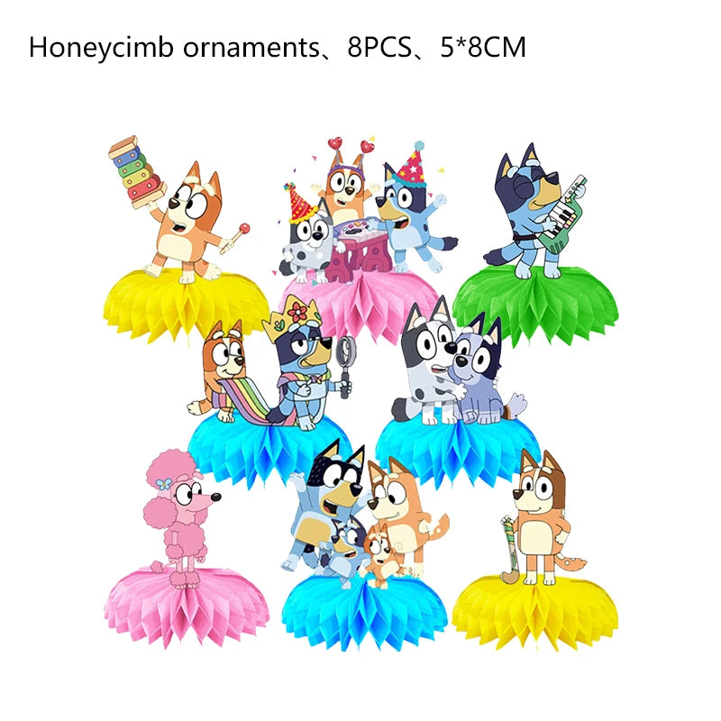 the CARTOON DOG BIRTHDAY - Blue Dog Theme Birthday Party, Cartoon Bluey Birthday Party Decoration Tablecloth Balloon Cake Stand Masks Tableware Kid Supplies
