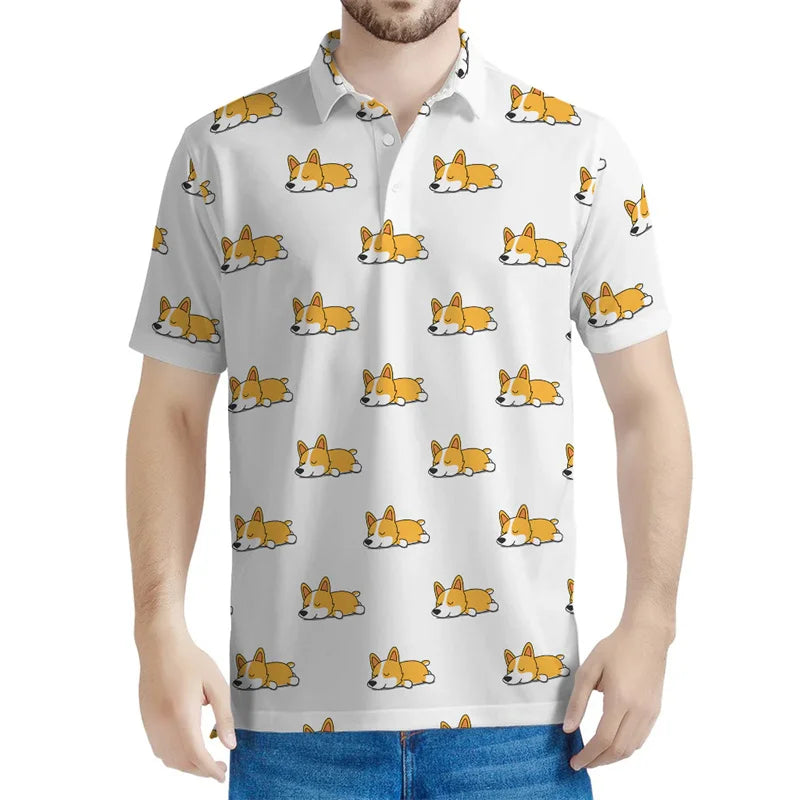 the CORGI CLUB - Cartoon Corgi Dog Graphic Polo Shirt for Men, Summer 3D Printed Pets Animal Tee Shirts, Button Short Sleeves Street Lapel T-Shirts