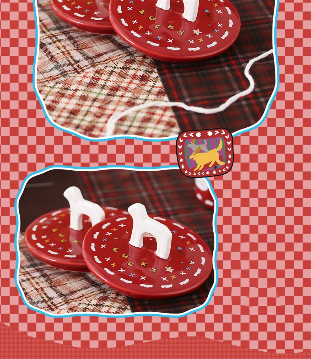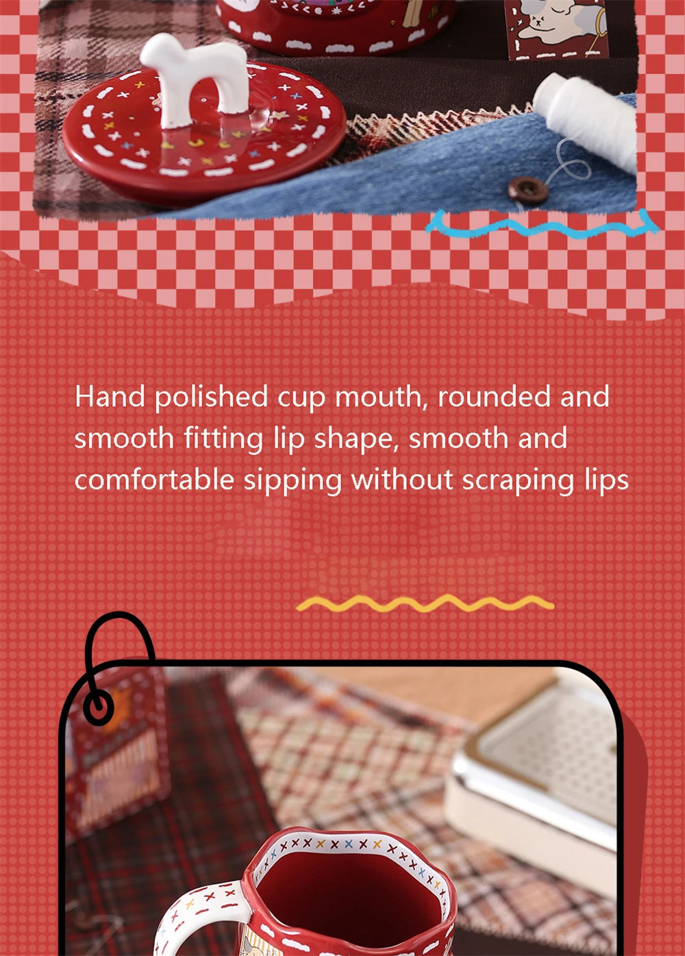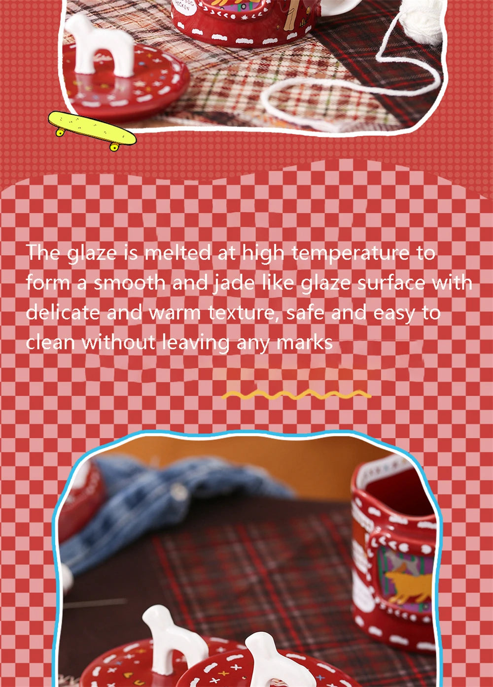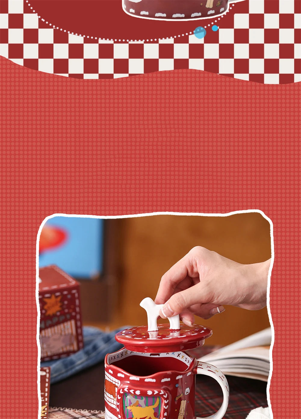 Cartoon Cute Ceramic Mug Dog Red Cup Lid Creative Christmas Water Cup Kitchen Accessories Coffee Cup Dust Cover Holiday Gift