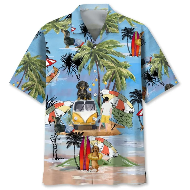 the DACHSHUND DOG DAY - Cartoon Dachshund Dog 3D Printed Shirt for Men, Animal Pets Graphics Short Sleeves Hawaiian Shirts, Tops Loose Lapel Blouse