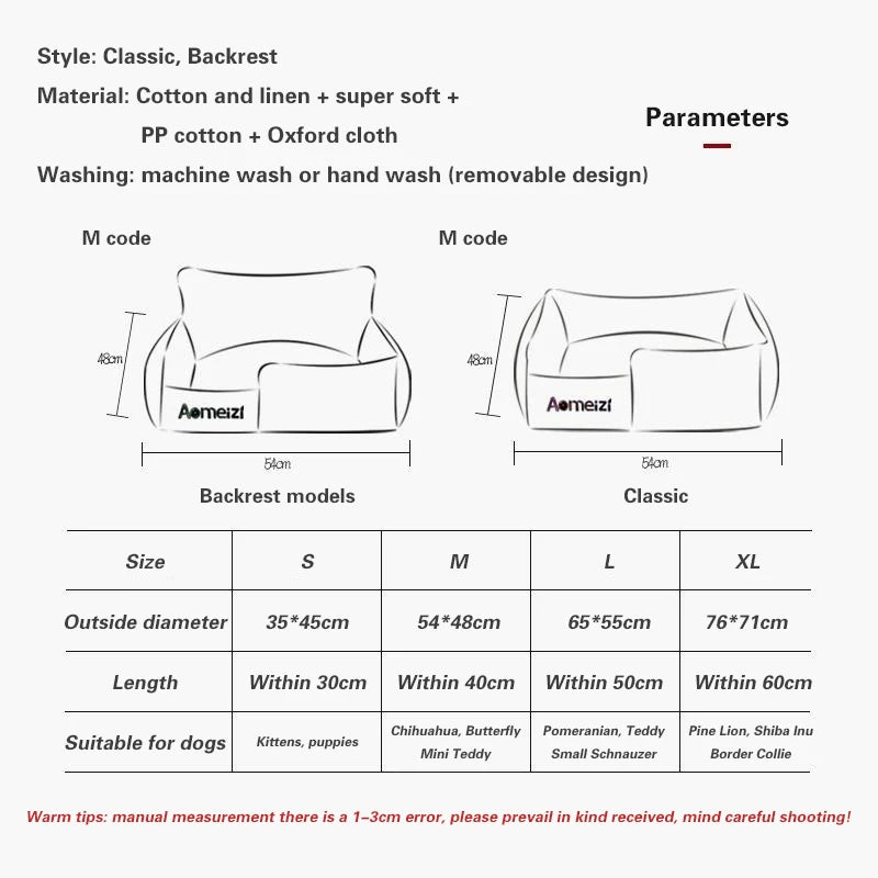 Cat Bed Sofa Winter Warm Removable Summer Cooler Mat Foam Neck Pad Nest Beds Pet Deep Sleeping for Small Medium Dogs Puppy