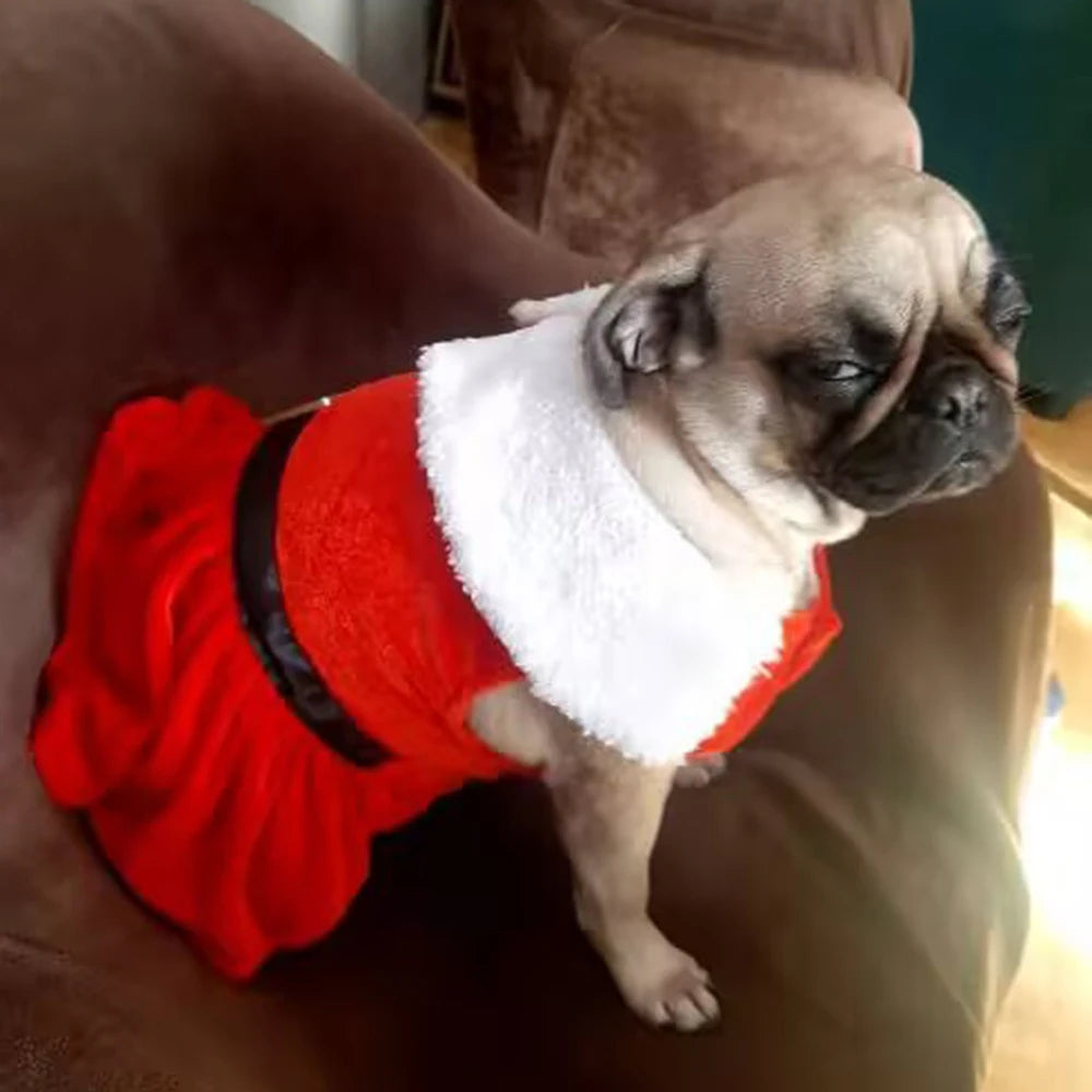 Christmas Dog Skirt Cute Pet Santa Claus Dress Costume for Small Medium Dogs Cat Puppy Cosplay Clothes Pug New Year Party Gifts