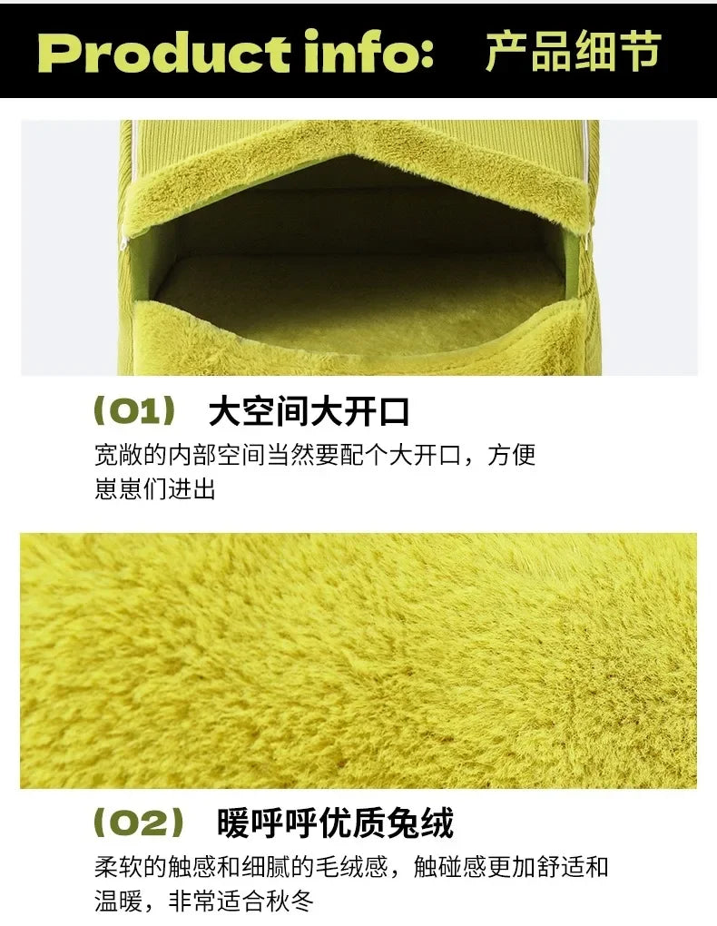 Dog Bed for Warmth in Winter, A Small Dog for A Sense of Security, and A Warm Dog House in Winter