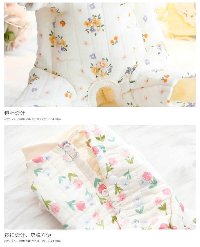 Dog Clothes Autumn and Winter Floral Double-layer To Protect The Belly Four Legged Small Dog Teddy Bear Pet Puppy Clothes