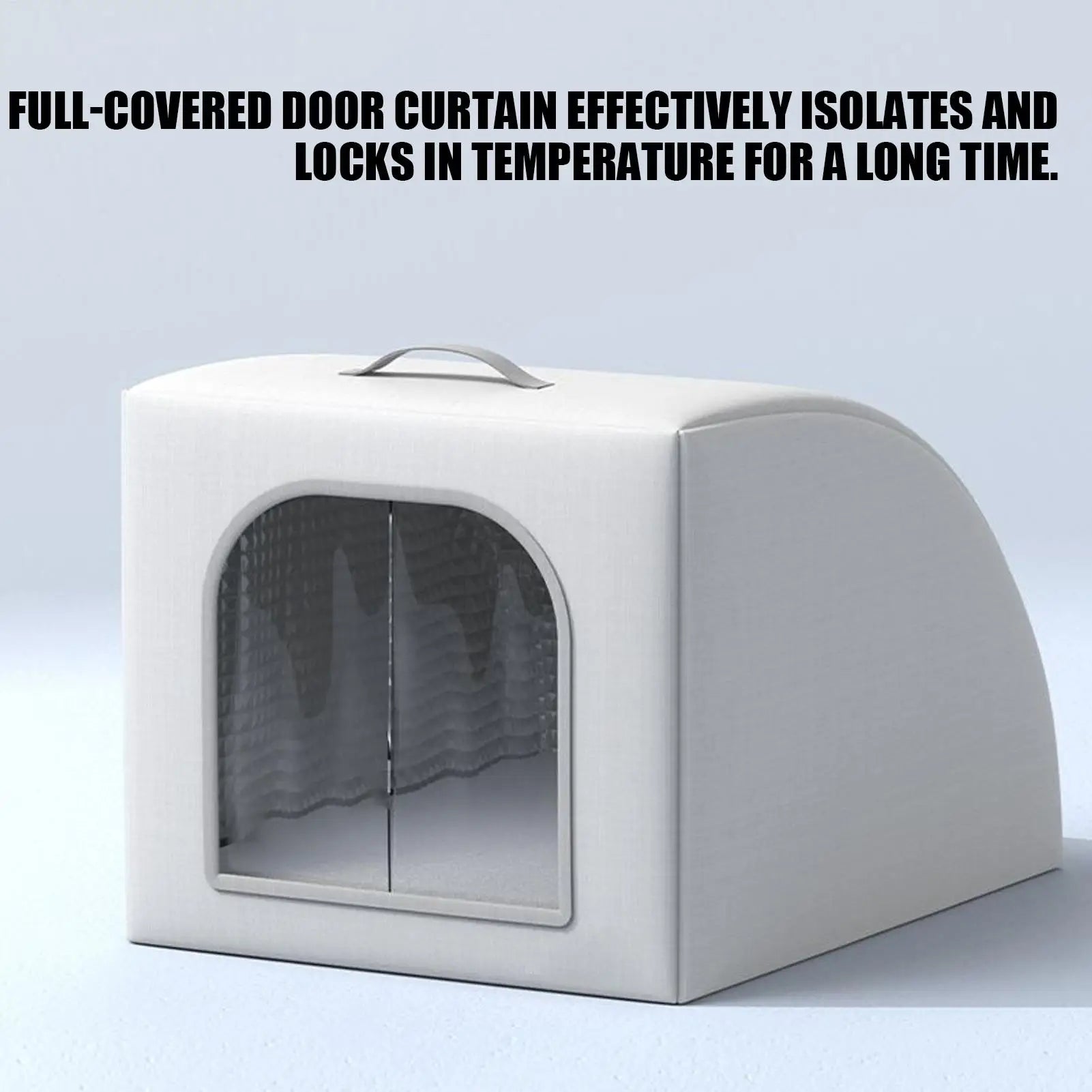 the COOLING CAVE - Doghouse with Cooling, Foldable Pet Cooling Shelter for Dogs/Cats with 8 Ice Bags, Doghouse for Farm, Backyard, Living Room, Front Door