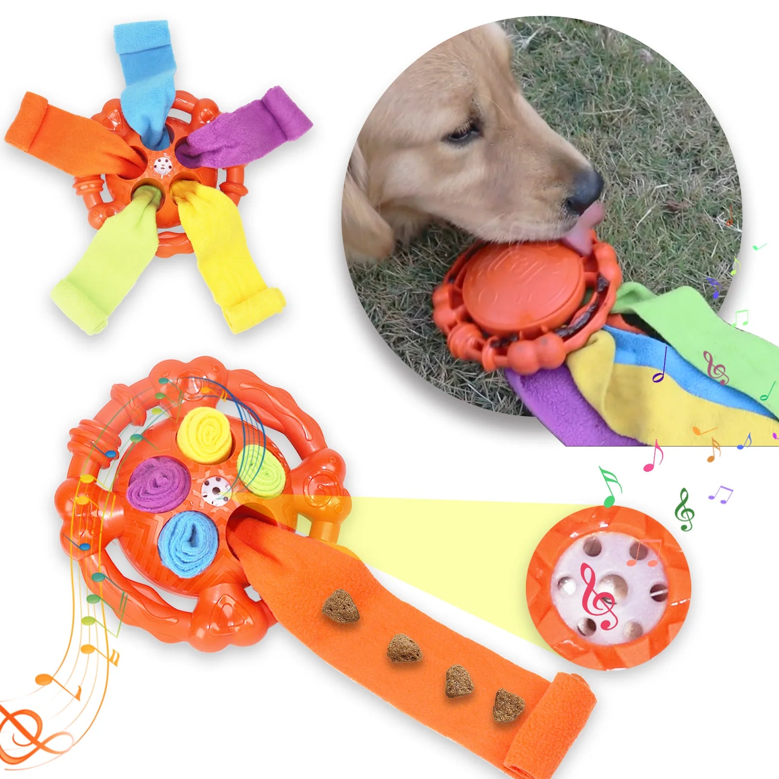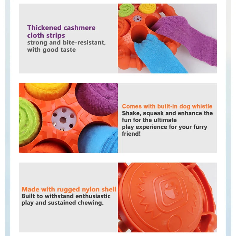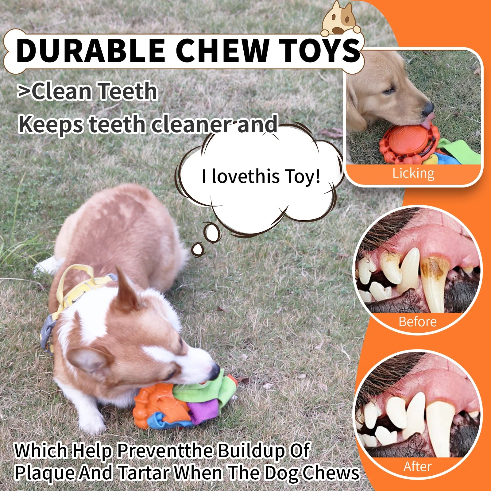Dog Interactive Toy Colorful Tug Chew Ball with Treat Hiding Ropes, Beef Flavor, Fun Sound Play, Pet Training Stress Relief