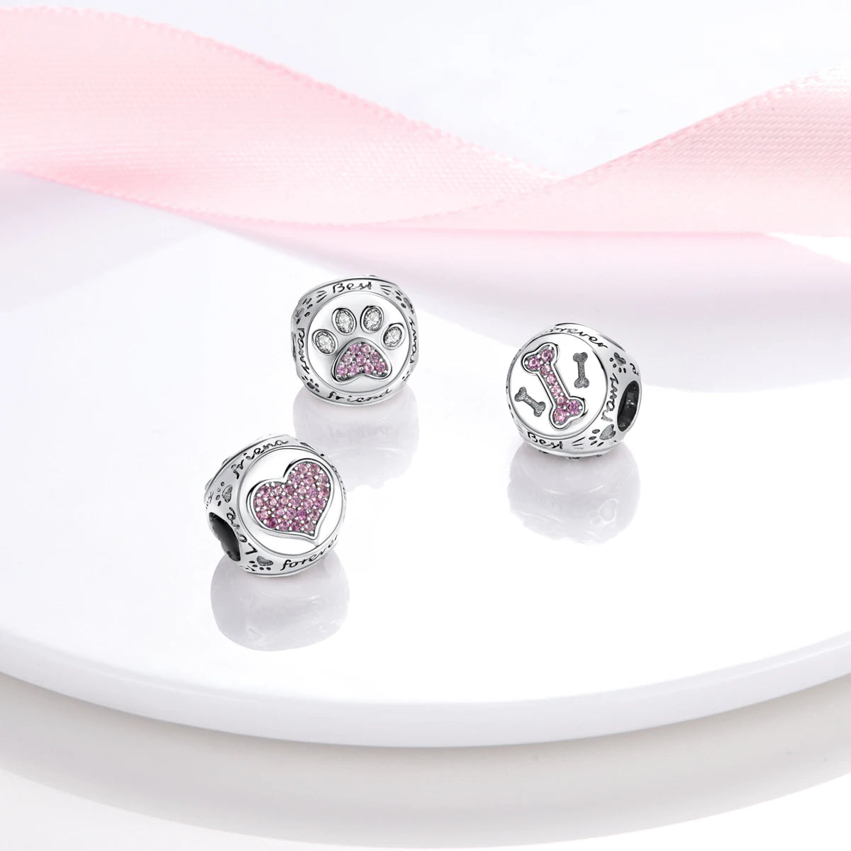 Dog Pet Charms 925 Silver Doggy Paw French Bulldog Bones Beads fit Original Bracelet DIY Fine Jewelry