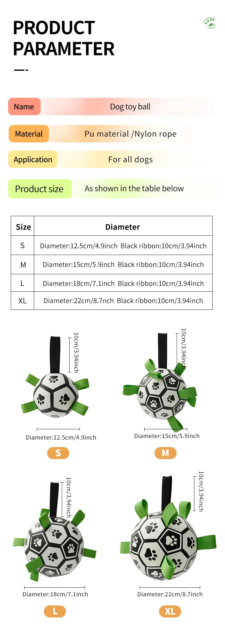 Dog Toys Soccer Ball with Straps Interactive Dog Toy for Tug of War Puppy Birthday Gifts Toy Durable Balls for Medium Large Dogs