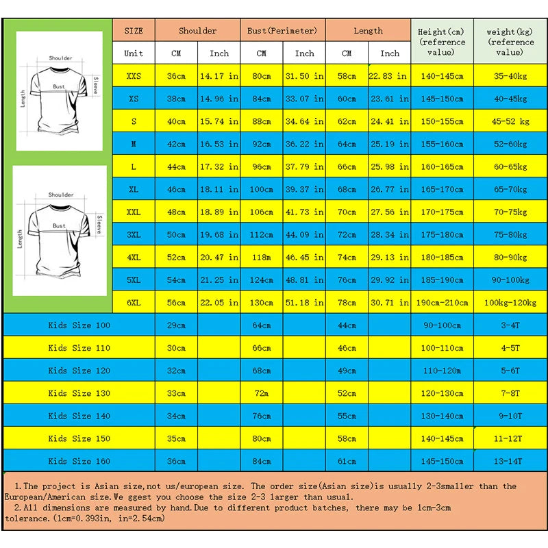 - These T-Shirts are Asian size, not US or European size. Please make note when you purchase that Asian sizes are usually 2-3x smaller than European/American sizes. For the most appropriate fit, we suggest that you choose the size which is 2-3x larger than usual.