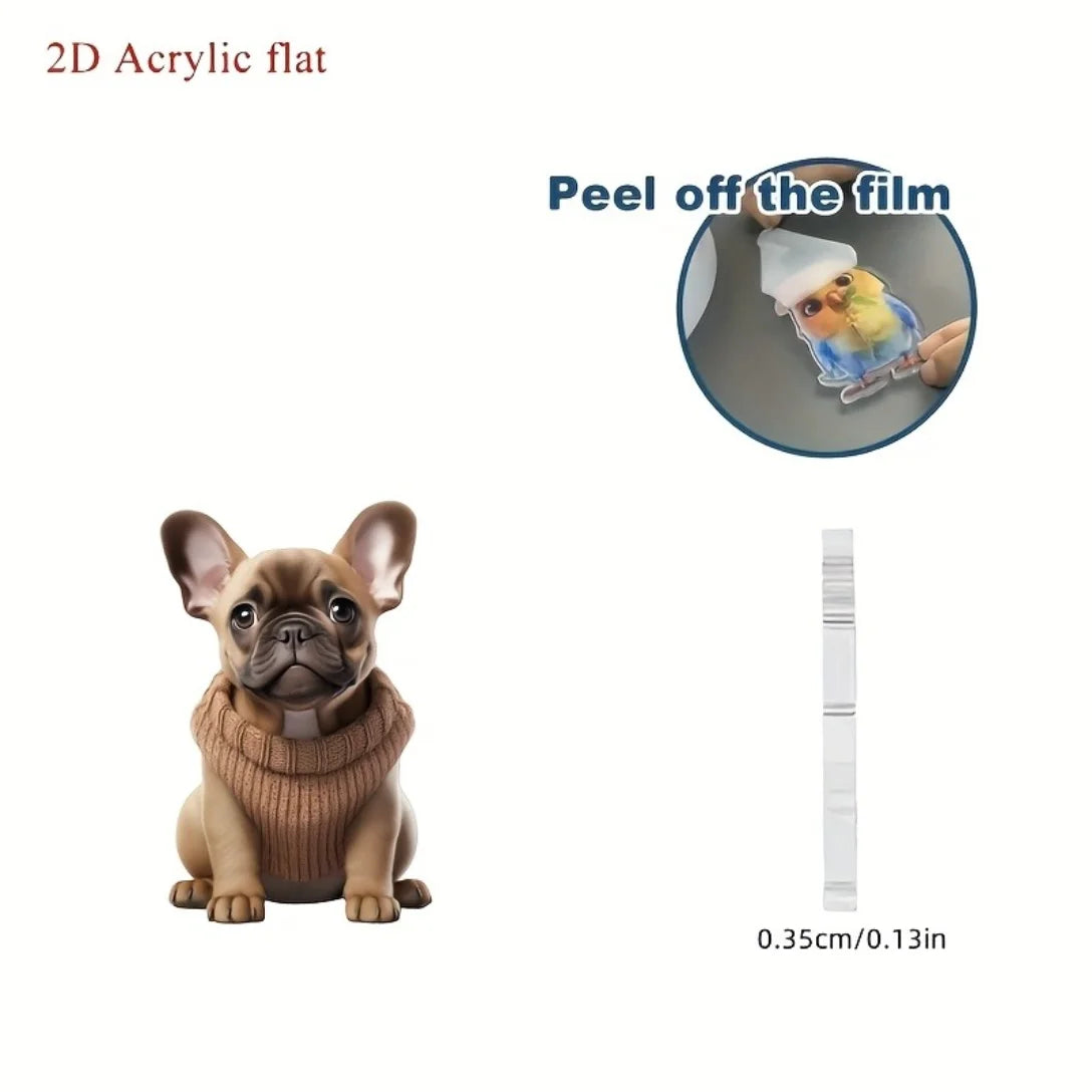 French Bulldog in Sweater Pendant Keychain,Cartoon Puppy 2D Flat Acrylic Ornament,Hanging Decoration for Car,Bags,Festive,Gift