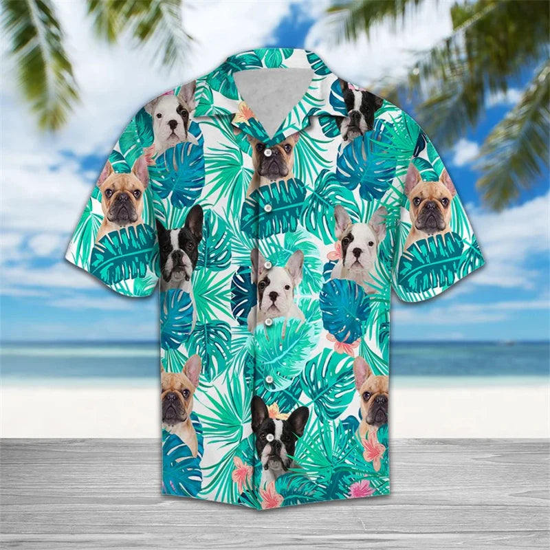 the BULLDOG HAWAII - Funny Bulldog Pattern Hawaiian Shirts, Summer Casual Beach Vacation 3D Cute Dog Printed Shirt, Loose Breathable Dog Lover Blouses