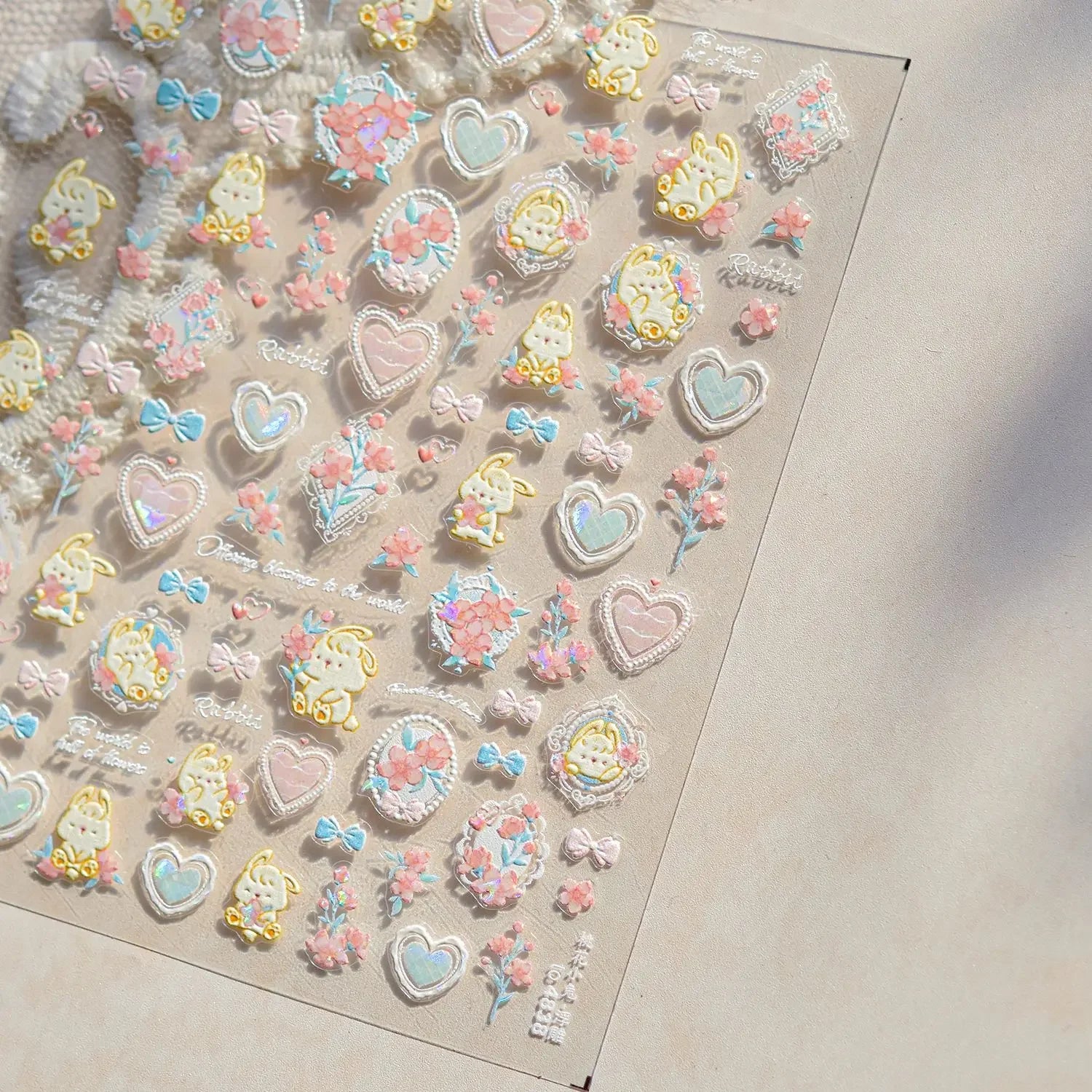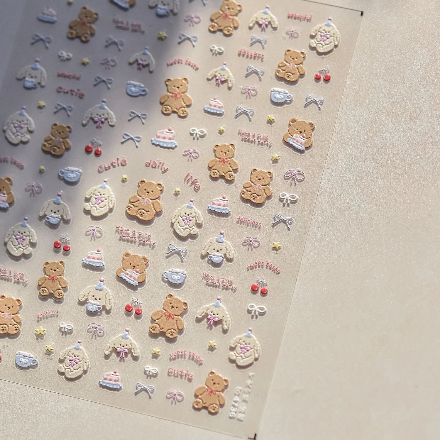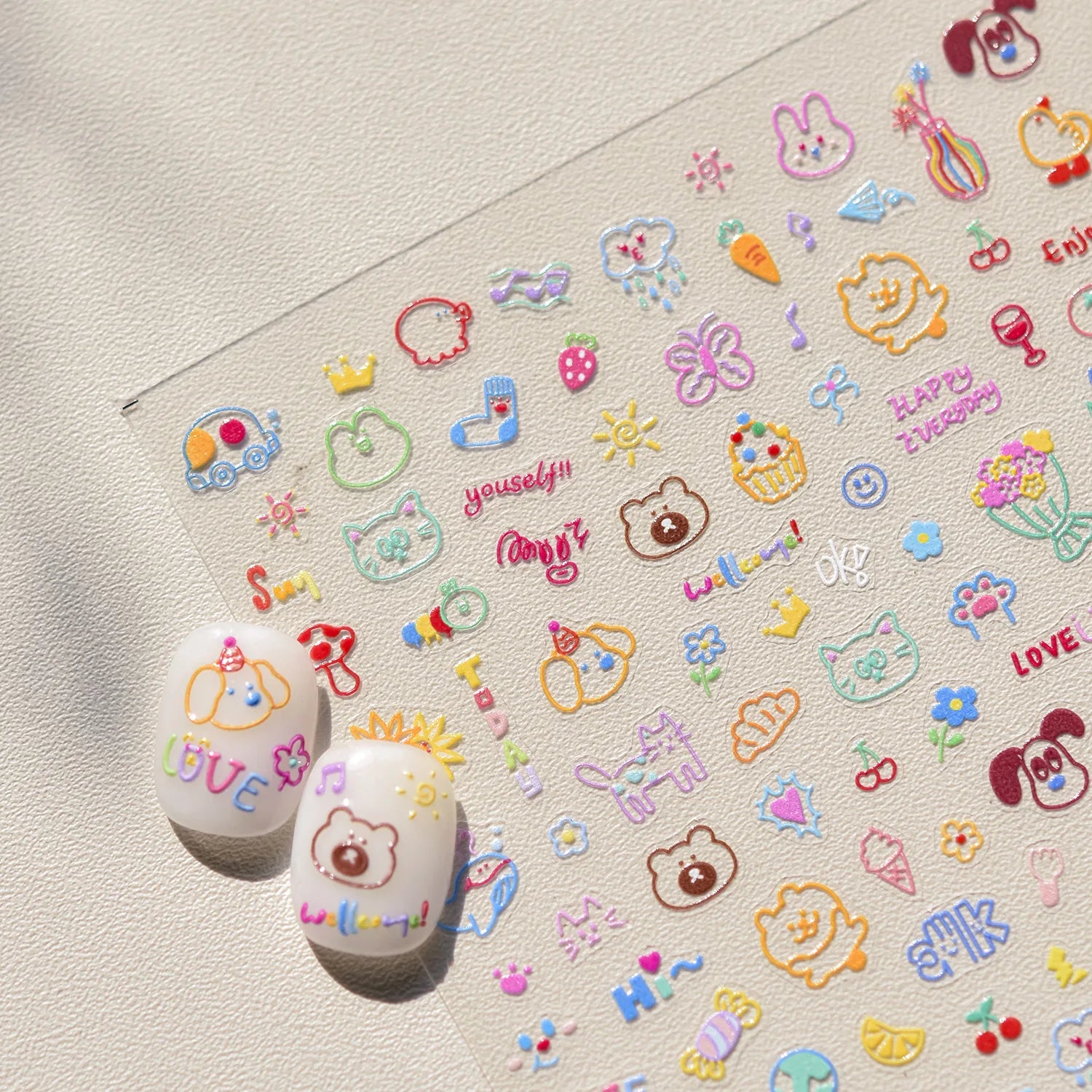 Graffiti Cat Claw Rabbit Bunny Bear Dog Flower Lovely Animal Fruit Dim Sum Candy Sunflower Adhesive 5D Nail Art Stickers Decal