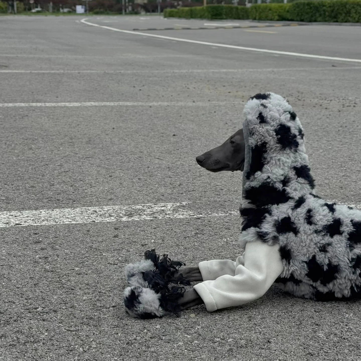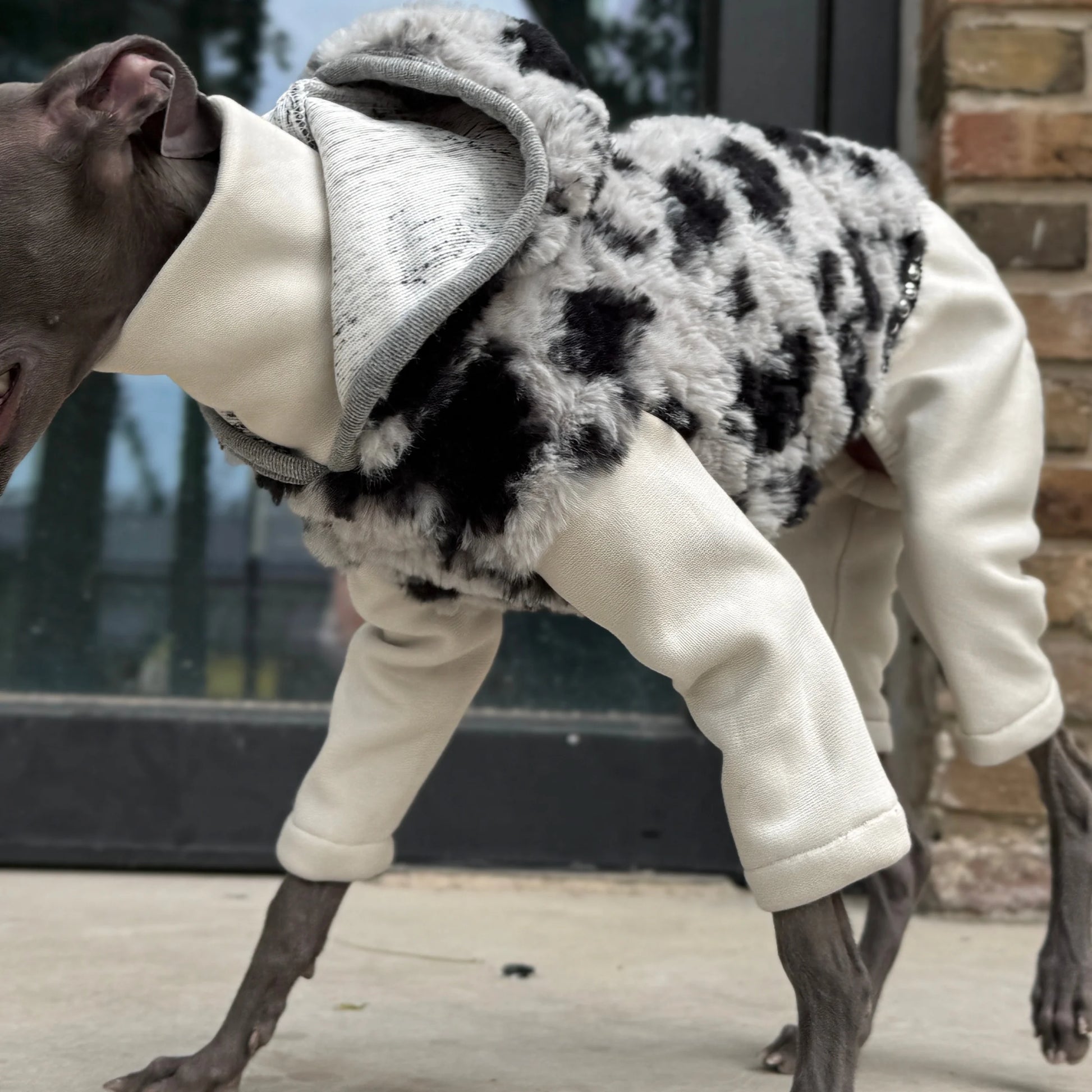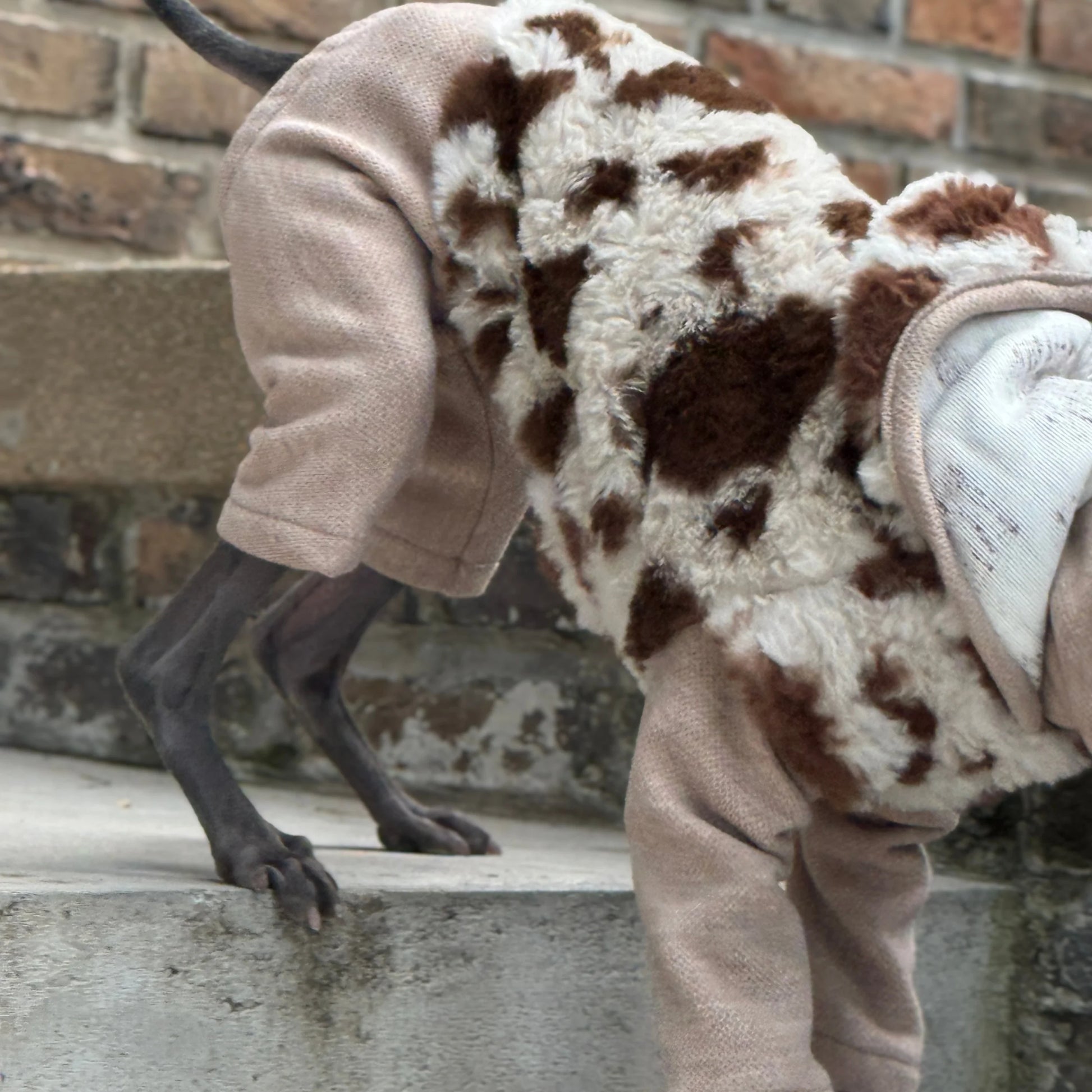 Hooded Leopard Sweater for Dogs in Winter Soft 4-legged False Two Fleece Coat for Greyhounds Warm High-neck Jumpsuit for Whippet