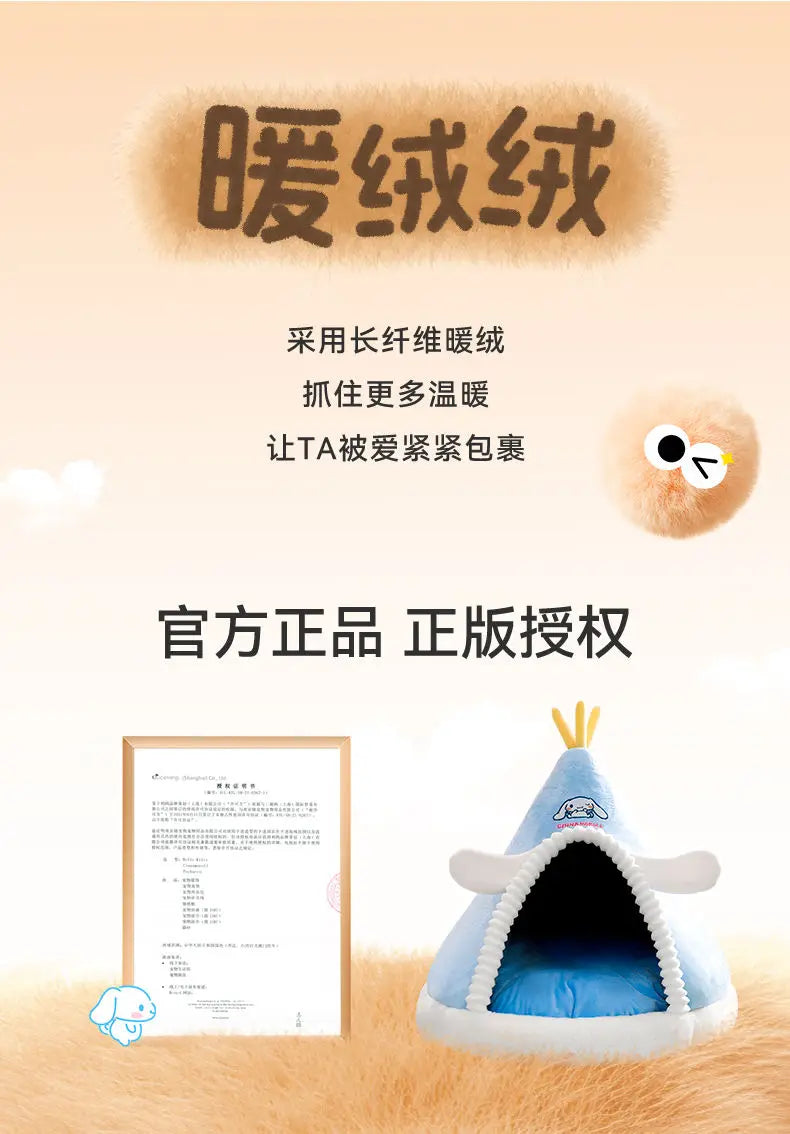 Kawaii Sanrio Cinnamoroll Dog Beds Cute Cat Mats Kennel Winter Warm Enclosed Safe House Removable Washable Sleeping Mat