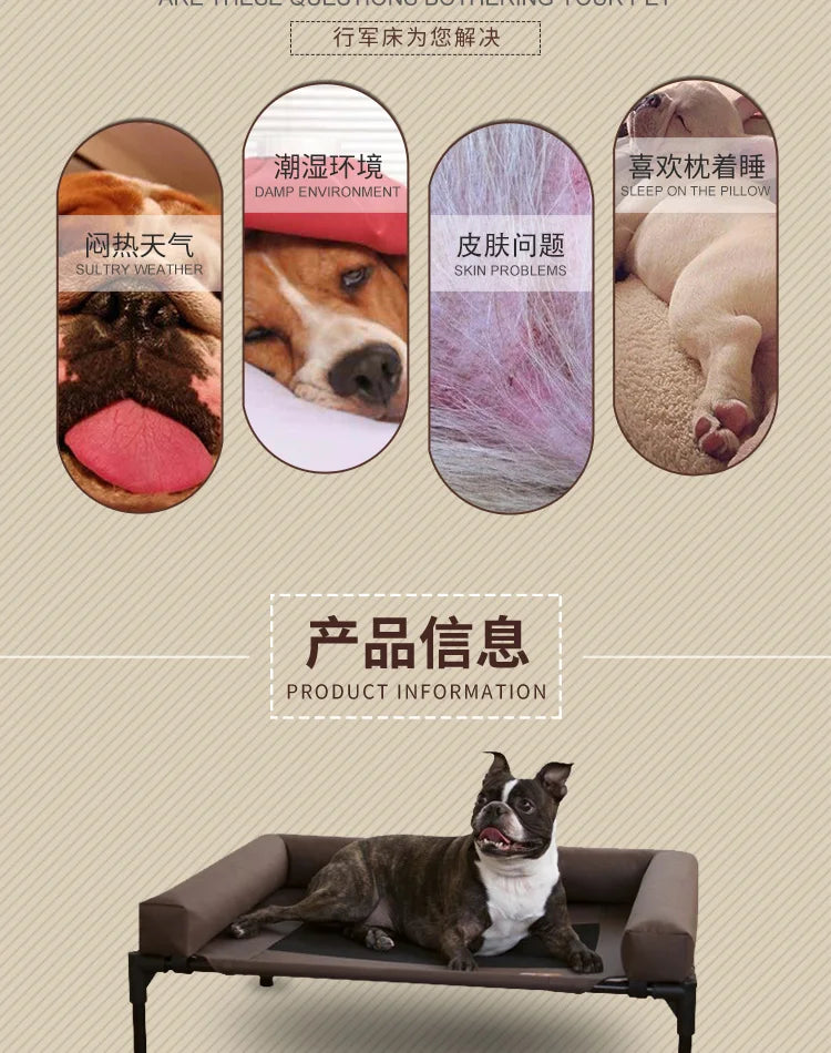 Large Elevated Cooling Dog Bed Portable Anti-Chewing Outdoor Kennel with Non-Slip Foot Rest Pet Bed