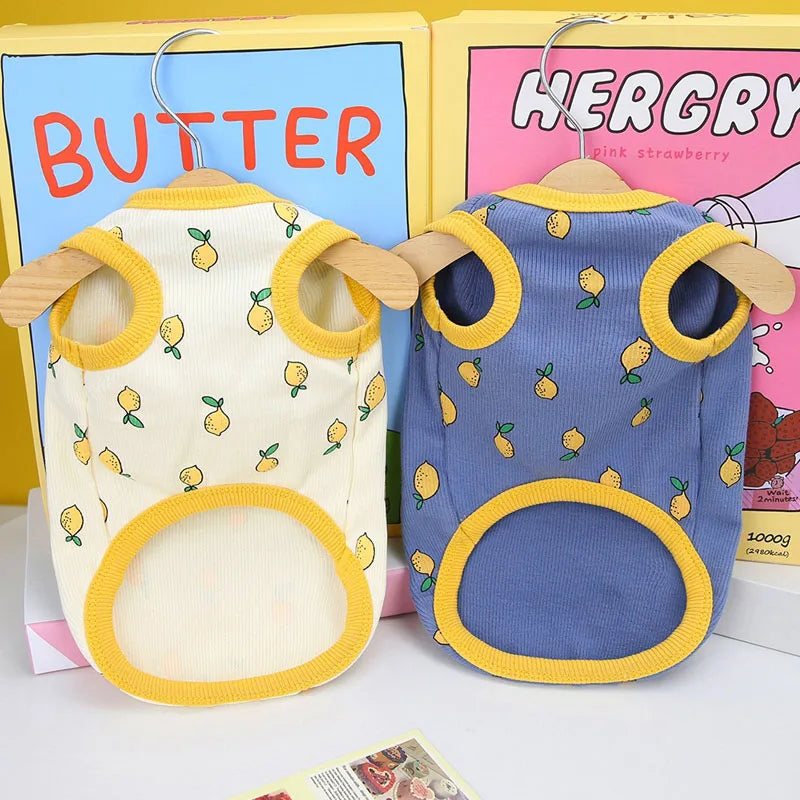 Lemon Pattern Dog Vest Shirt Pet Clothes Beige Blue Costume Sleeveless Hoodies Vests For Small Dogs Chiwawa Puppy Sweatshirt XXL