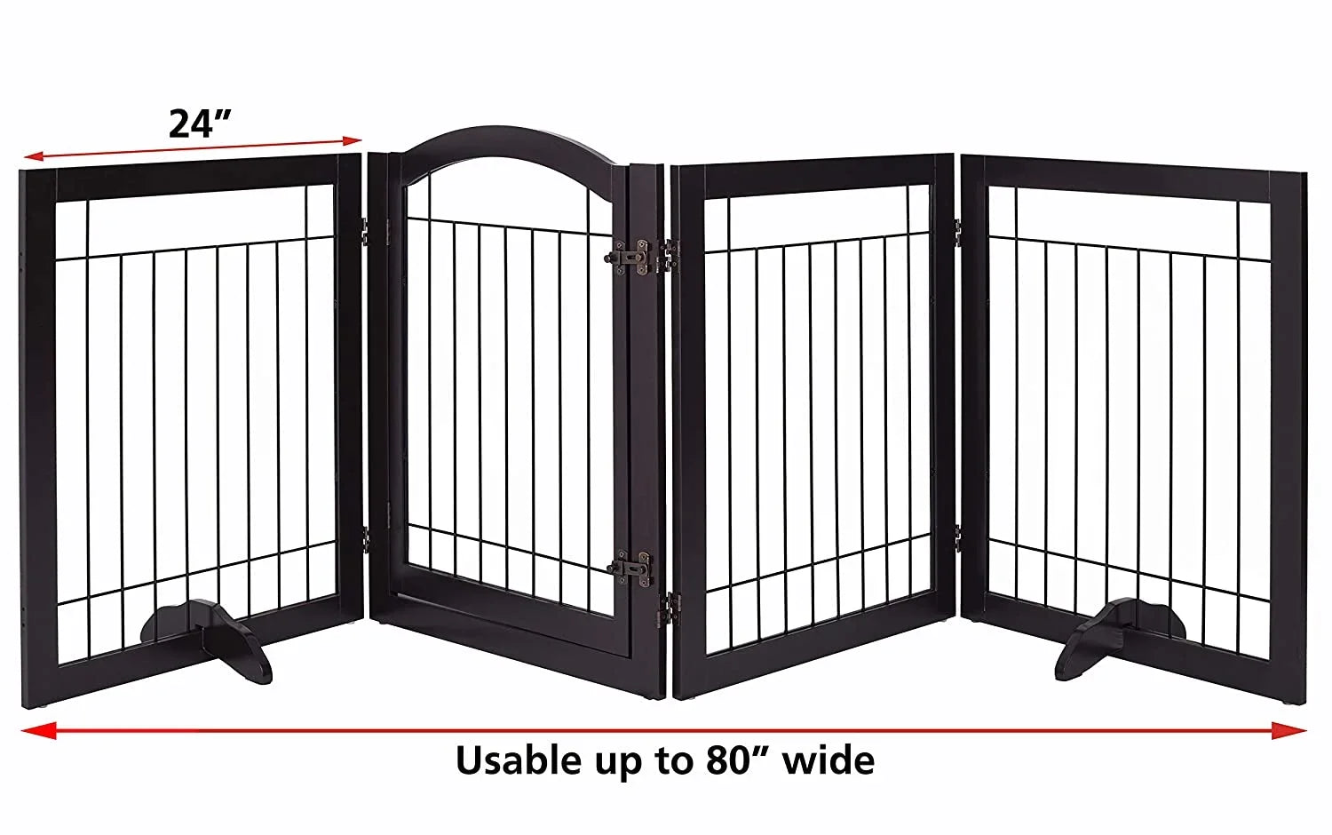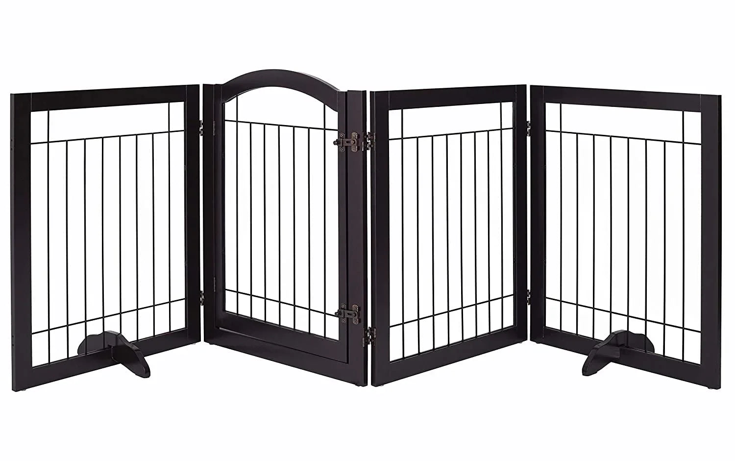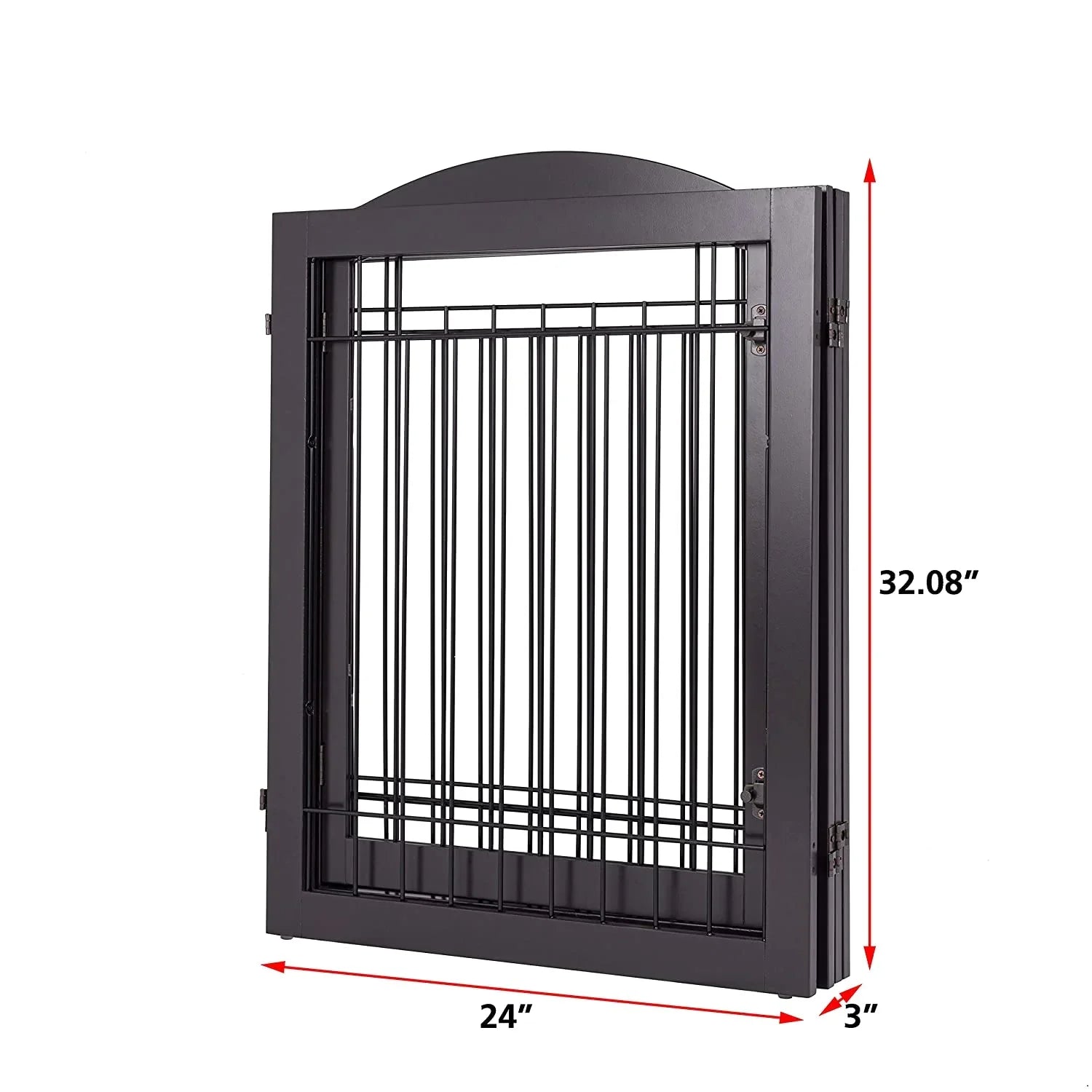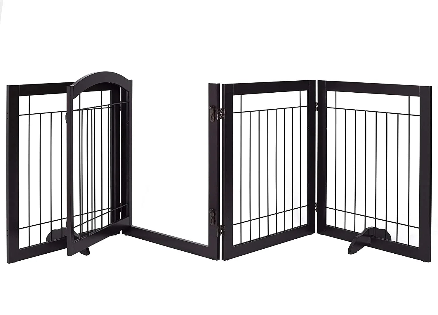 the BARRIER FENCE - Wood Pet Fence, Indoor Stainless Steel Dog Cage, Dog Fence - Large Outdoor With 4 Panels