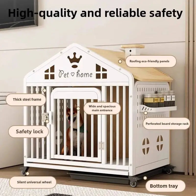 the DOG VILLA - Multi-Functional Solid Wood Steel Frame Pet Dog Villa, Small/Medium-Sized Dog Cage, Indoor Outdoor Dog Cage, Dog Bed with Toilet