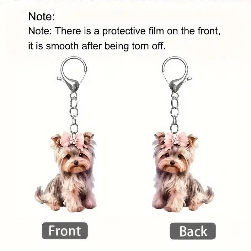 New Simulation Yorkshire Dog Keychain Acrylic Alloy Car Keychain Bag Backpack Pendant Couple Friends Party Exquisite Small Gift