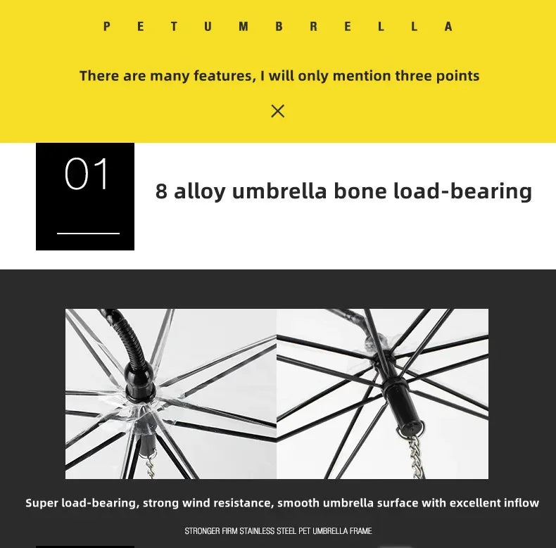 - ☔ Transparent umbrella keeps rain off your pup