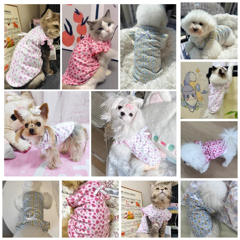 the PAWBLOOM FLORAL VEST - Pet Dog Vest, Summer Puppy Clothes, Cute Floral Flying Sleeves Dog T-Shirt, Chihuahua, Pug, Bichon, Cat/Dog Apparel, Dog Girl Clothing