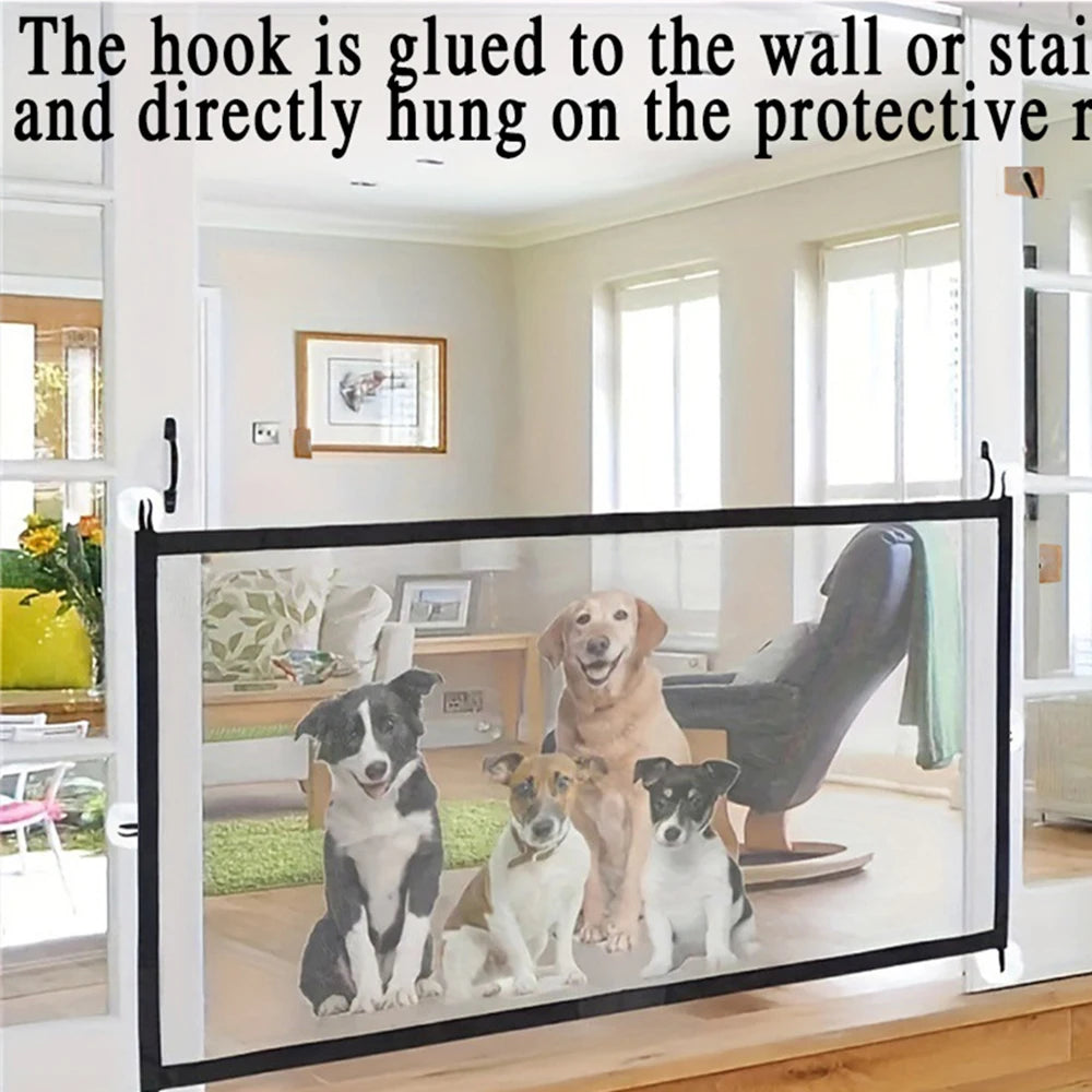 Pet Isolation Barrier Nylon Mesh Pet Divider No Need To Punch Hole Pet Separation Fence Folding Breathable Safety Dog Gate Guard