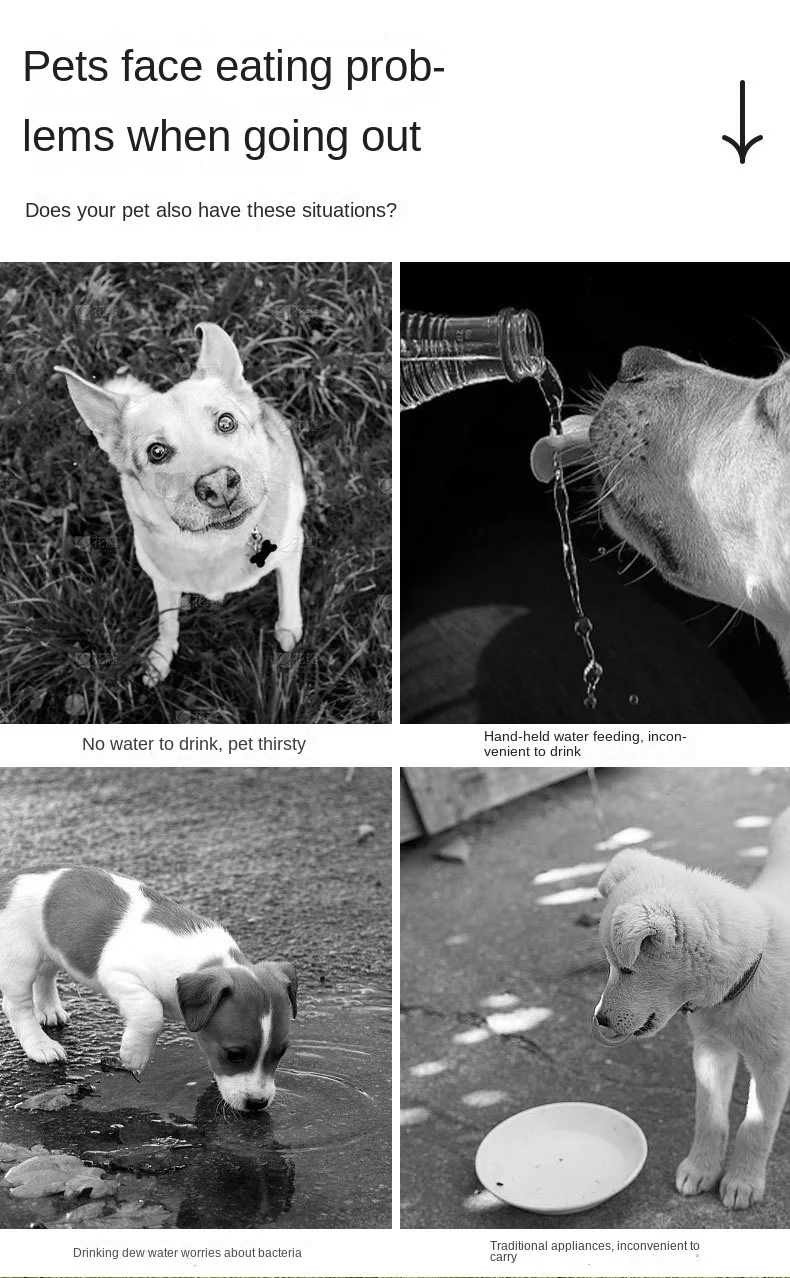 ● Durable & Safe Material: Crafted from high-quality, food-grade plastic, this water bottle is safe for your pet and designed to withstand frequent use. It's a durable solution for all your pet's outdoor adventures.