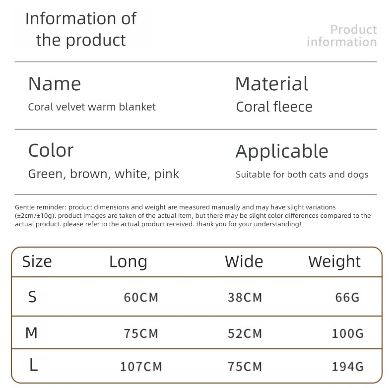 Plush & Warm Pet Bed Mat, Super Soft Dog Cat Sleeping Pad for Indoor Use, Cozy Thick Fleece Blanket for Cold Weather