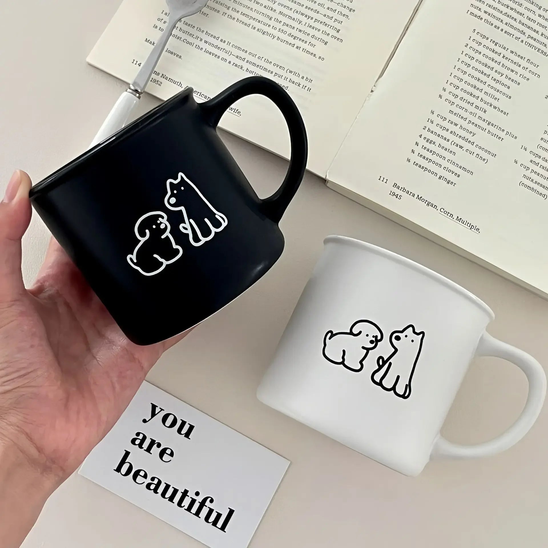 Premium Frosted Small Dog Mark Cup, Korean INS Breakfast Coffee Cup, Ceramic Cup Black and White Couple Cup Gift Box Set