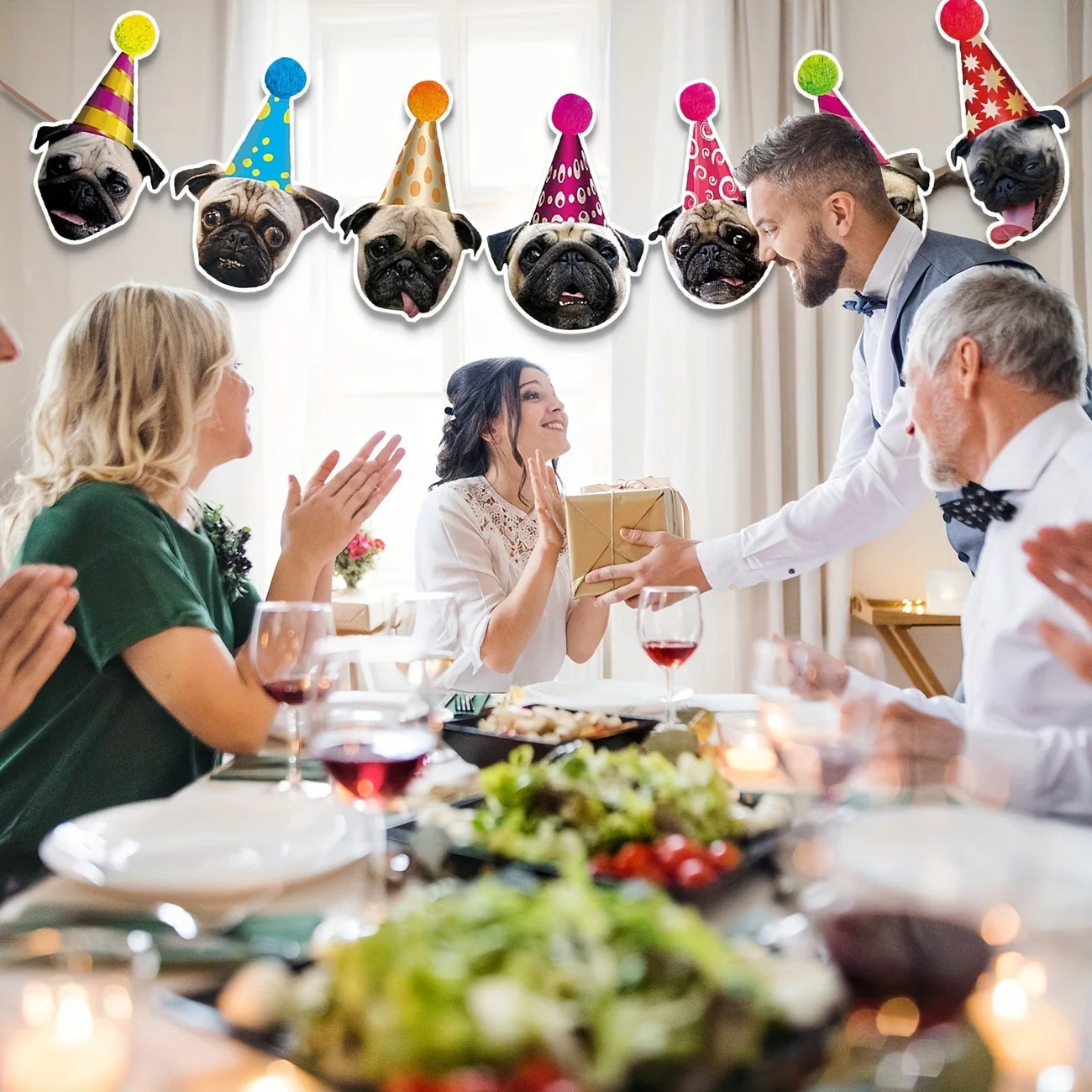Pug Birthday Garland, Pug Dog Birthday Banner, Pug Bday Party Decoration for Pug Lovers