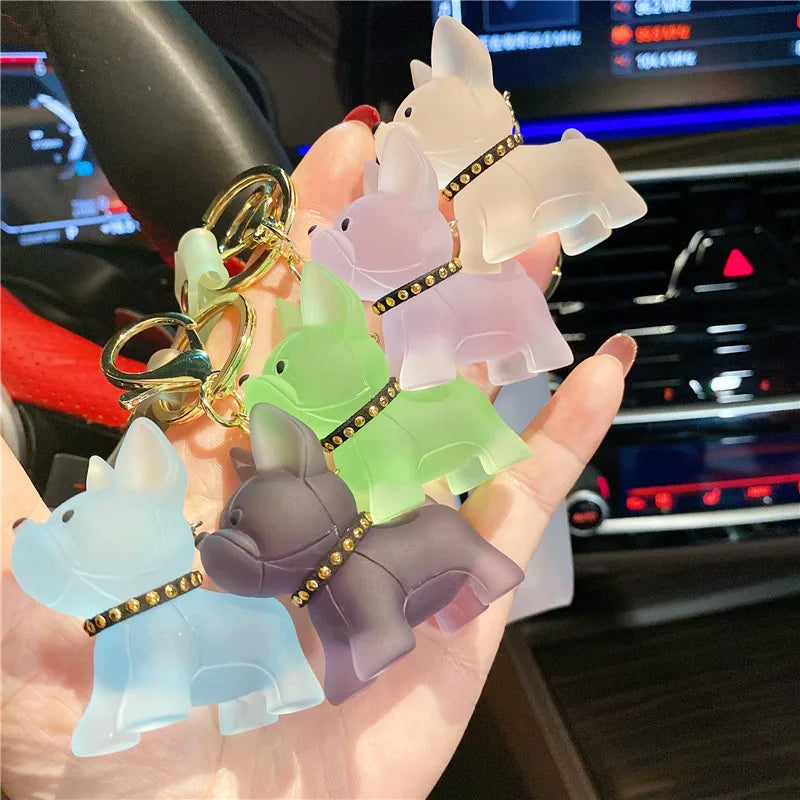 Punk French Bulldog Keychain PU Leather Dog Keychains Fashion for Women Bag Pendant Jewelry Trinket Men's Car Key Ring Key Chain
