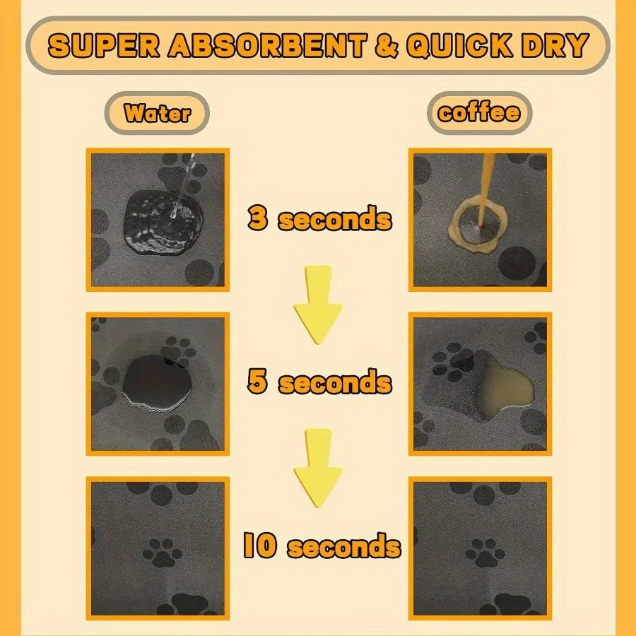Quick-drying and Absorbent Dog Feeding Mat Non-slip and Anti-pad with Paw Print Design Suitable for Food and Water Bowls
