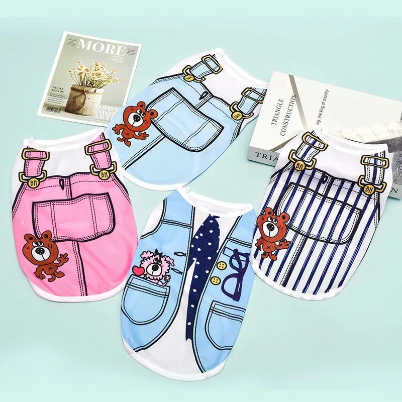 Quick-drying Yorkie Dog Vest Dog Tank Top Summer/Spring Cartoon Hoodie Chihuahua Dog Clothes French Bulldog Puppy Dogs/Cat Shirt