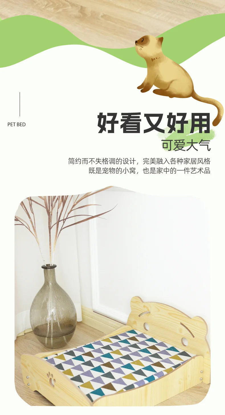Removable Washable Four-season Universal Princess Nest Pet Dog Wooden Bed with Cushion Nest Teddy Medium and Small Dog Cat Bed