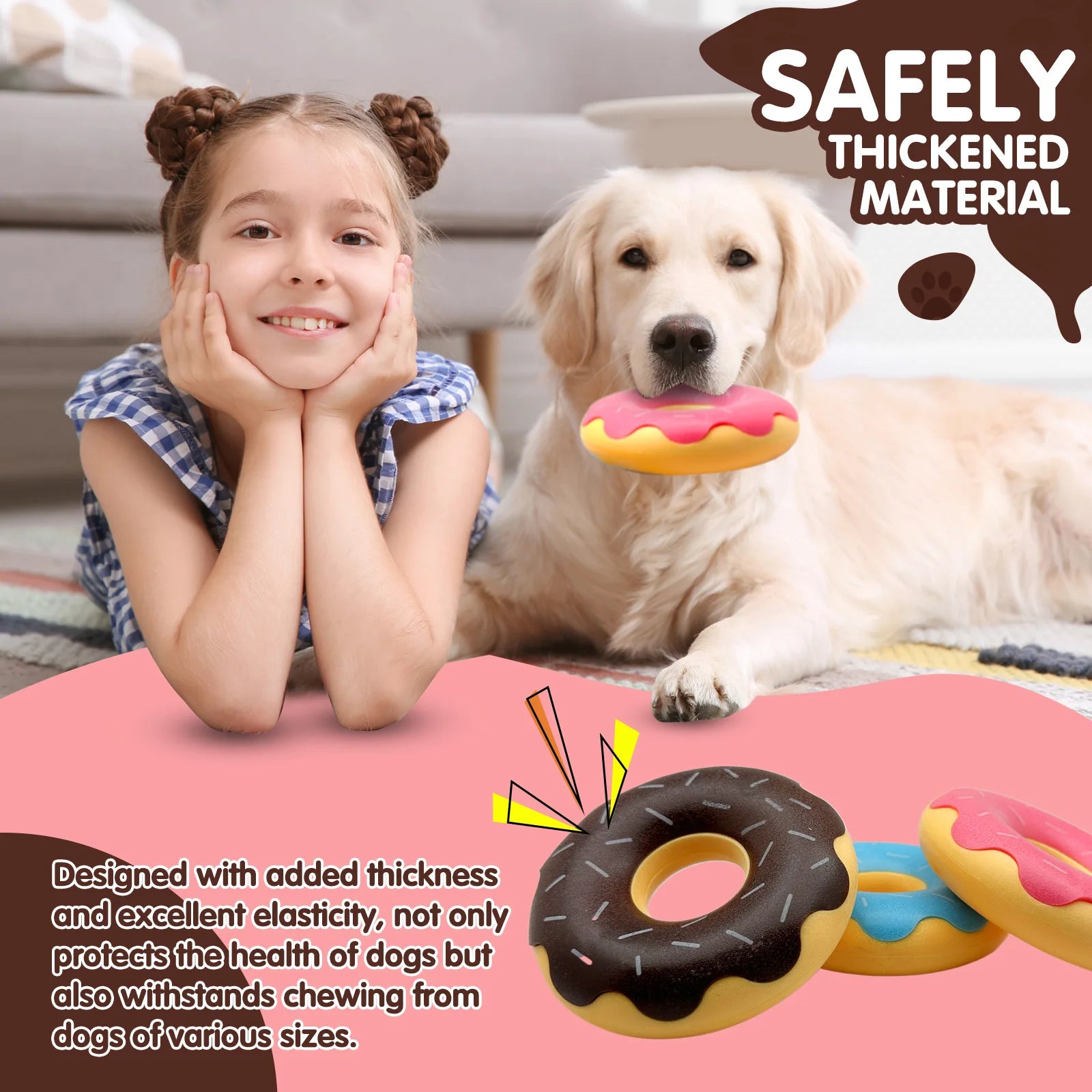 Rubber donut dog toy with functions of grinding teeth, cleaning teeth, interactive companionship, relaxation, and vocalization