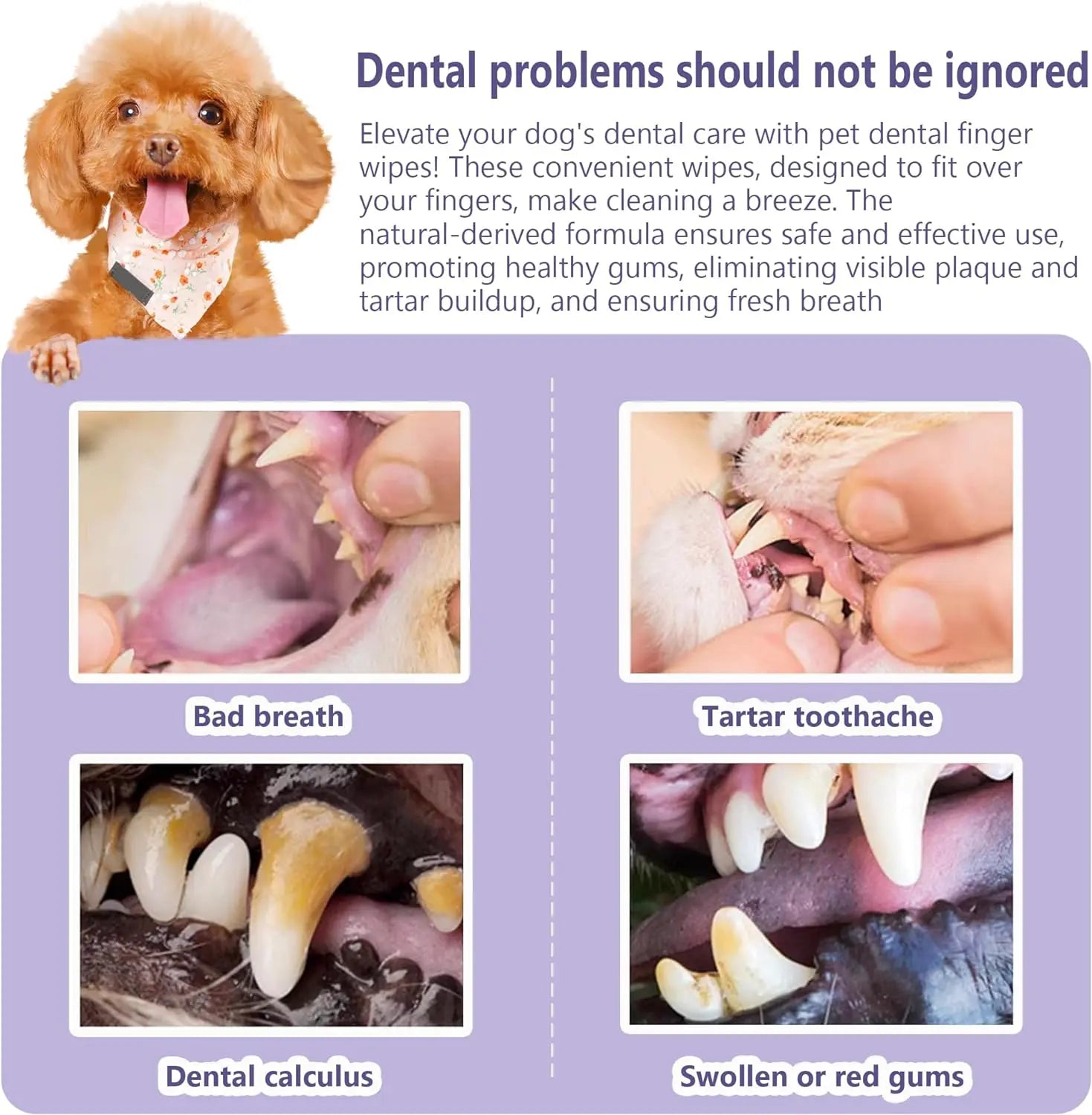 Teeth Cleaning Wipes for Dogs & Cats, Reduces Plaque & Freshens Breath Finger Wipes, Disposable Gentle Cleaning & Gum Care Pet W