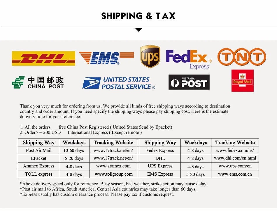 Fast Free shipping: Order>180usd DHL/FEDEX/UPS/EMS